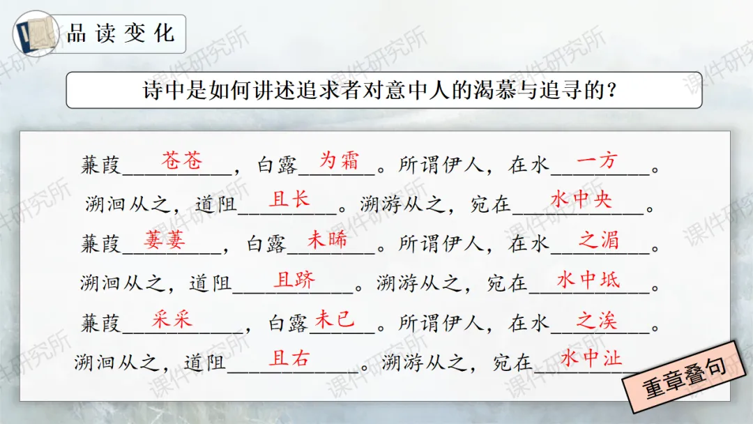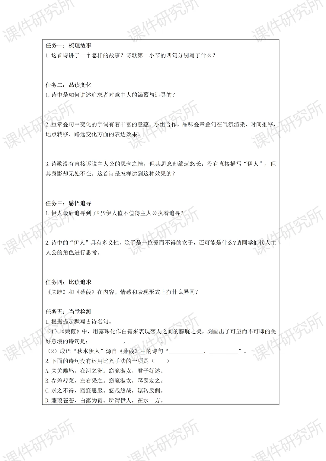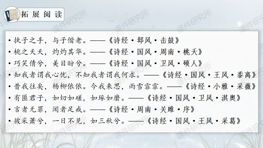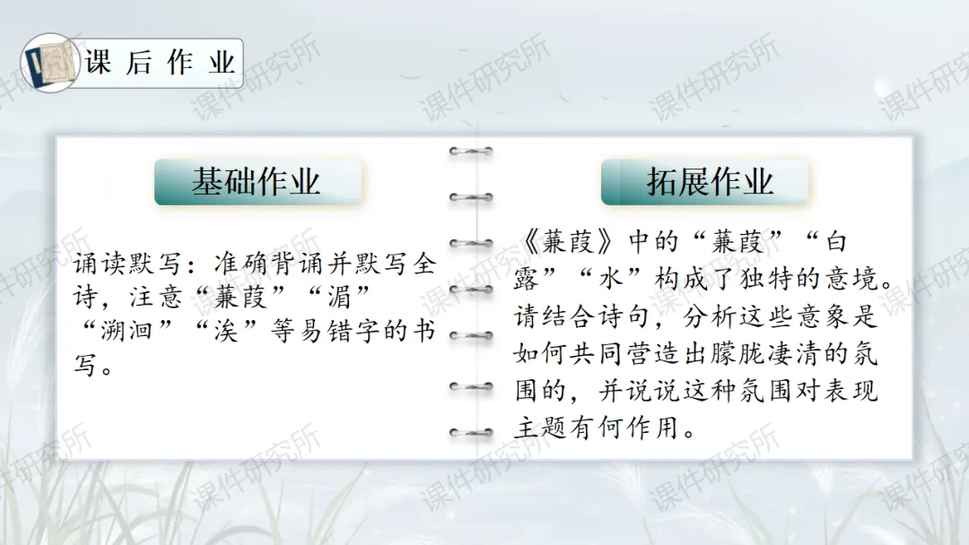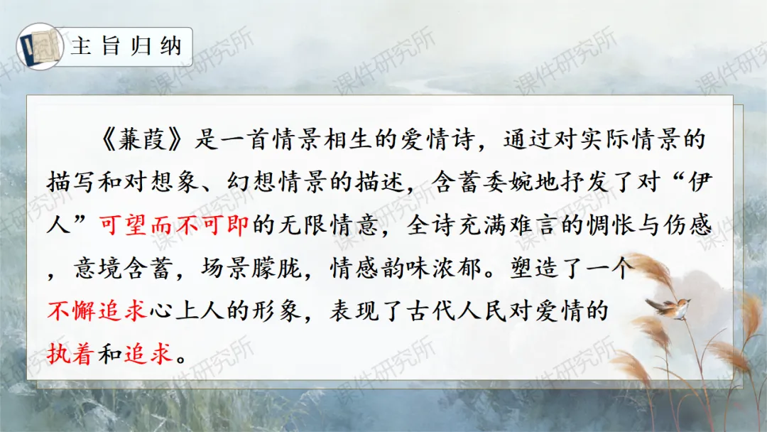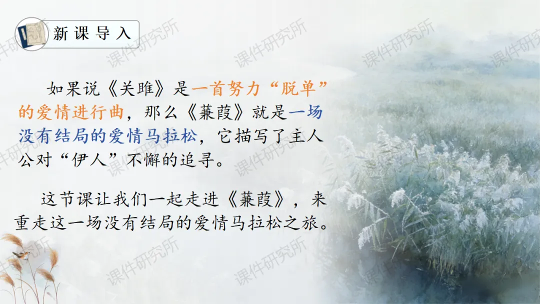 一场没有结局的爱情马拉松——《蒹葭》(课件+教学设计+任务单+作业单) | 名师系列