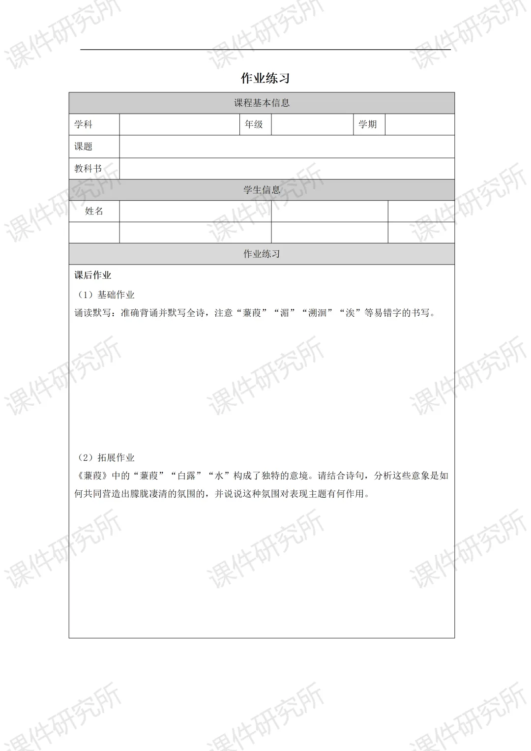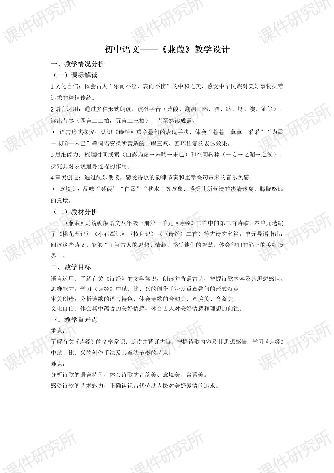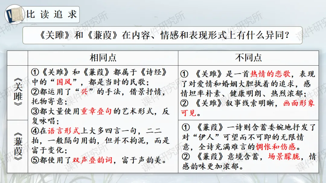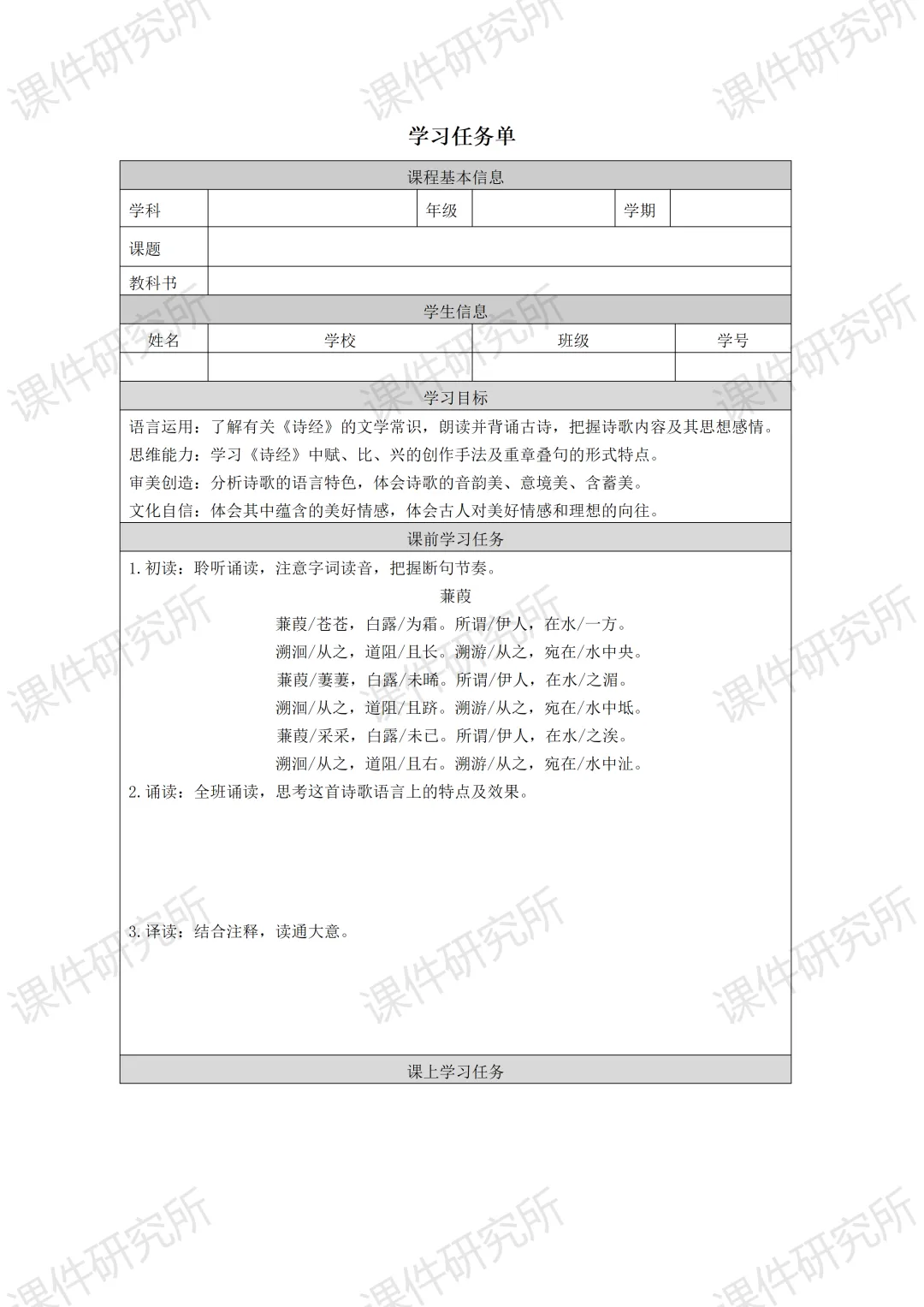 一场没有结局的爱情马拉松——《蒹葭》(课件+教学设计+任务单+作业单) | 名师系列