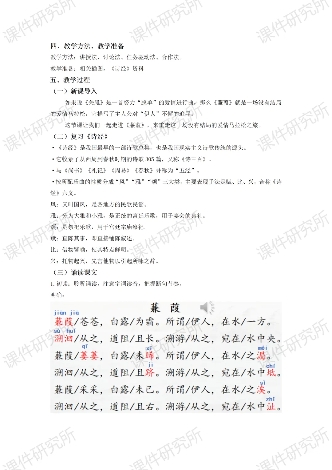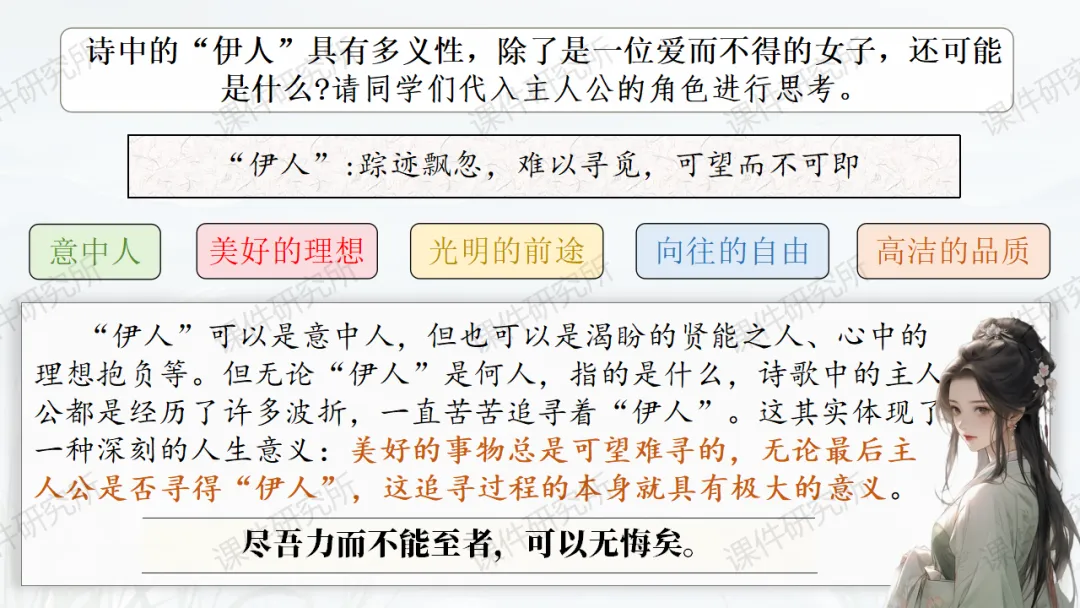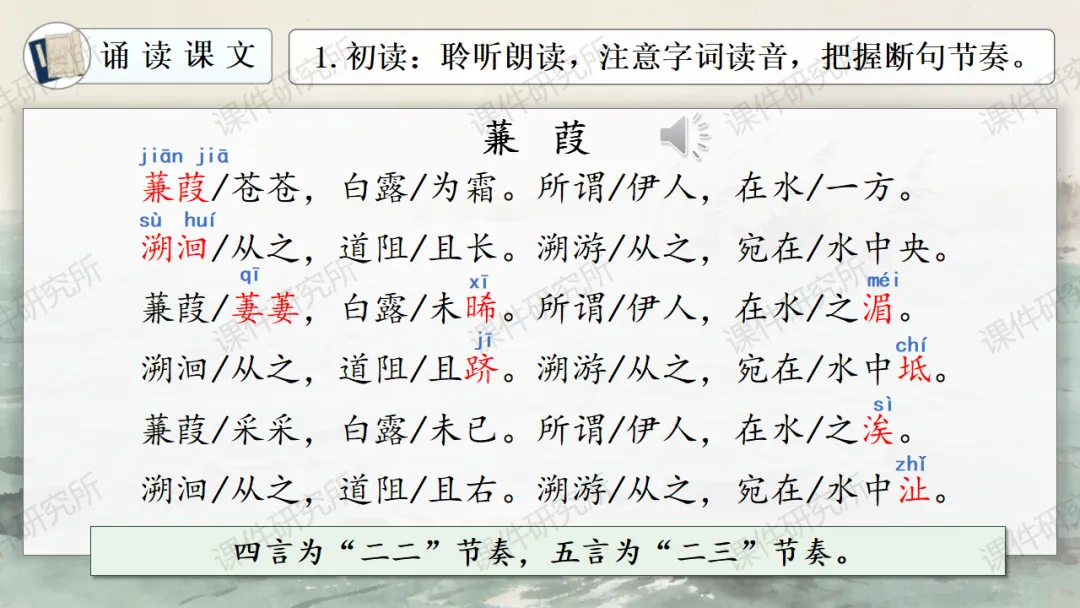 当前位置:首页>课件>一场没有结局的爱情马拉松——《蒹葭》(课件+教学设计+任务单+作业单) | 名师系列