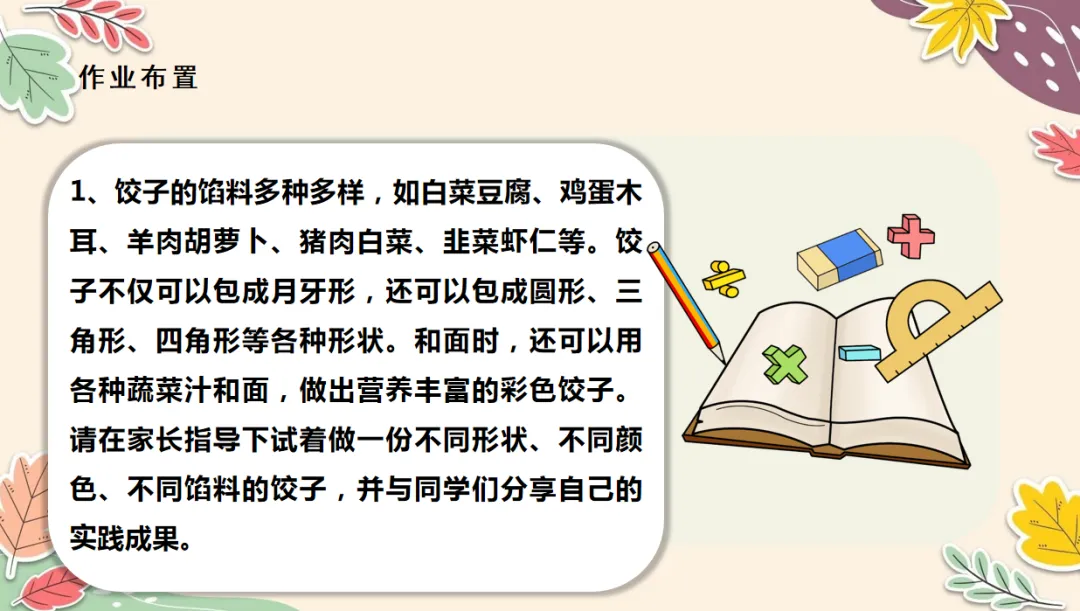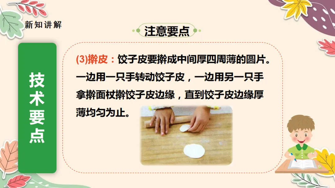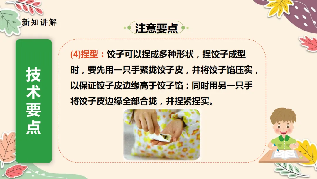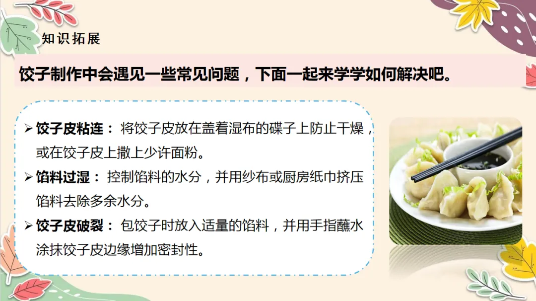 劳动能力:学会制作饺子需要的手工技巧,如包馅、捏口等,同时也需要一定的体力来完成整个制作过程。