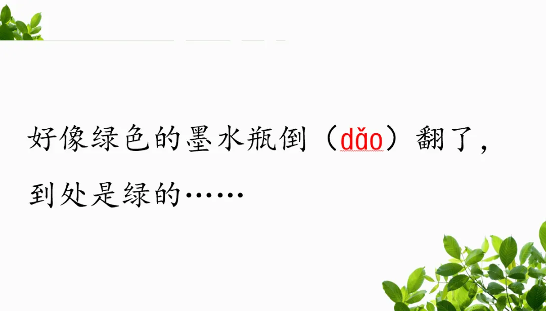 生:好像绿色的墨水瓶倒翻了,到处是绿的,