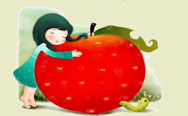结合绘本内容,了解苹果的生长过程(从一粒种子到一棵大树、开花、结果),知道苹果的颜色(红、黄、绿、三色相间)、味道、外形特征,以及苹果种子的位置。