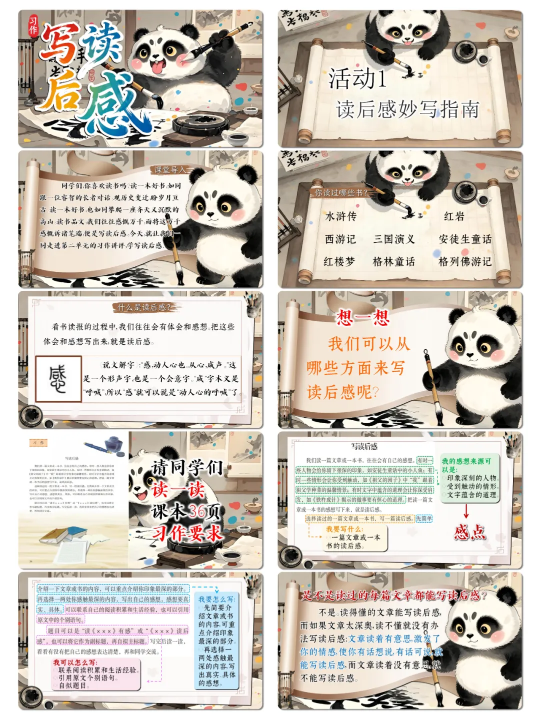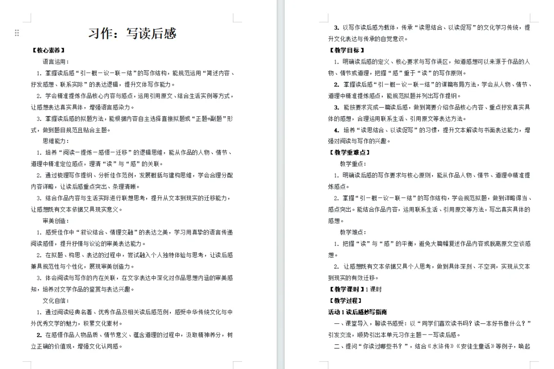 2. 学会精准提炼作品核心内容与感点,运用引用原文、结合生活实例等方式,让感想表达真实具体,增强语言感染力。