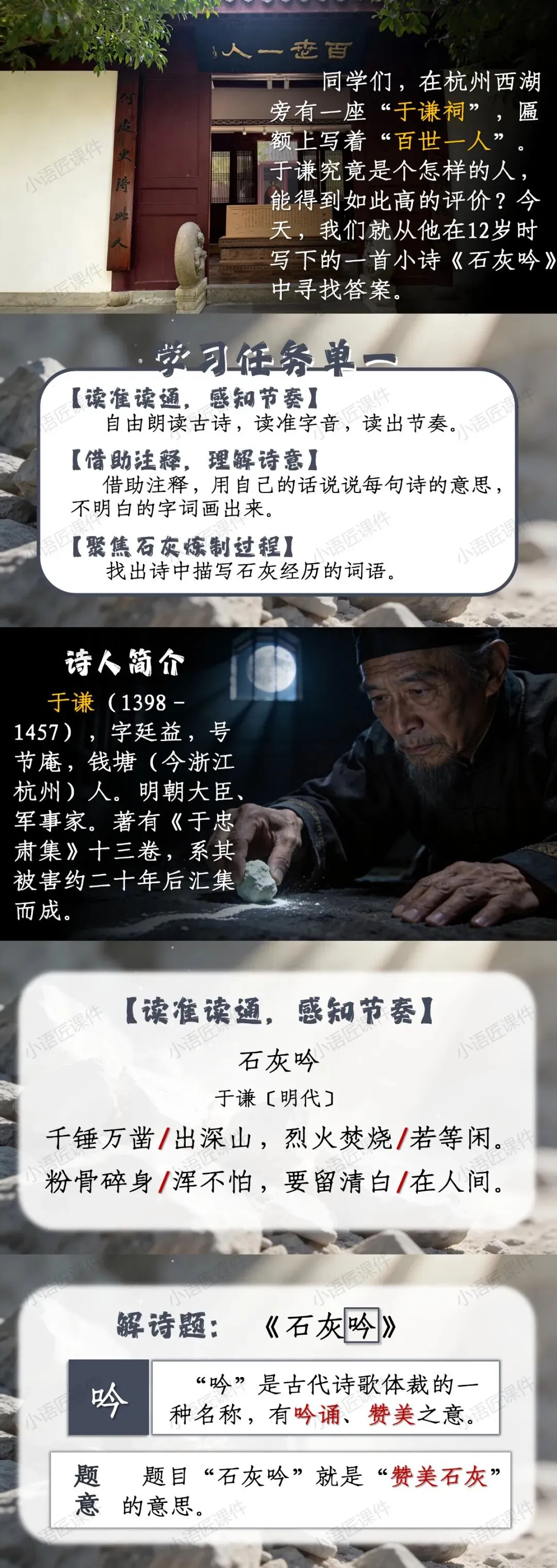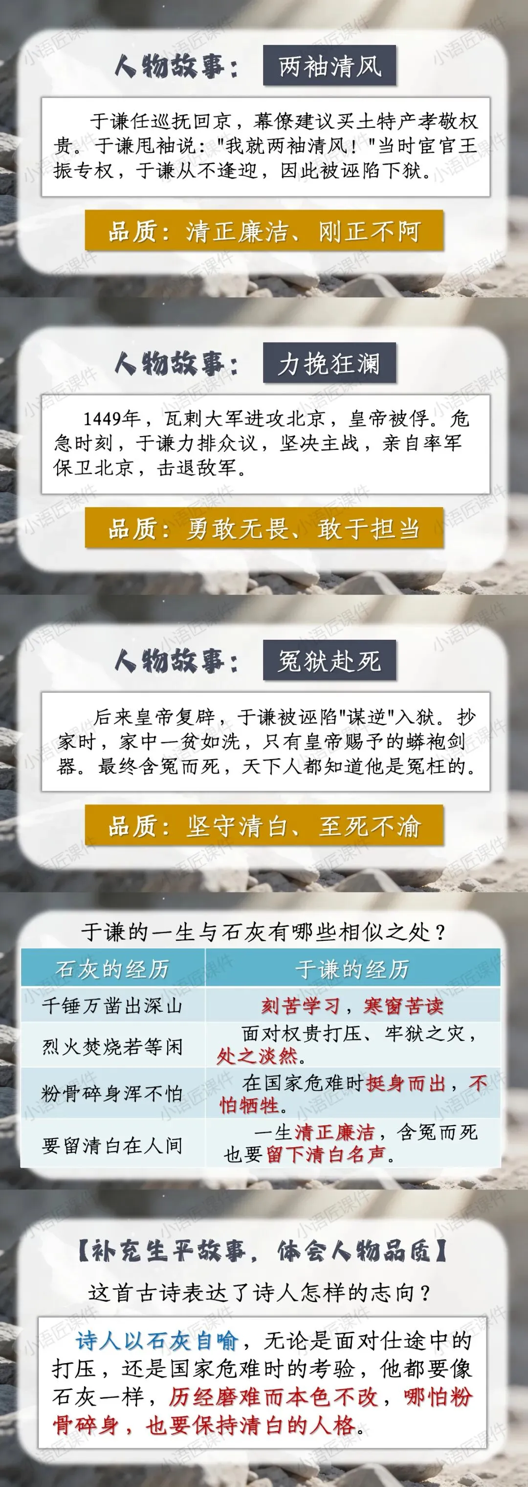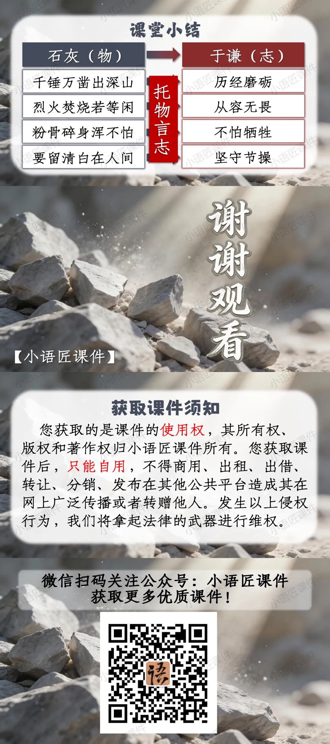 以上便是部编人教版六年级下册《石灰吟》的独家课件的全部内容。
