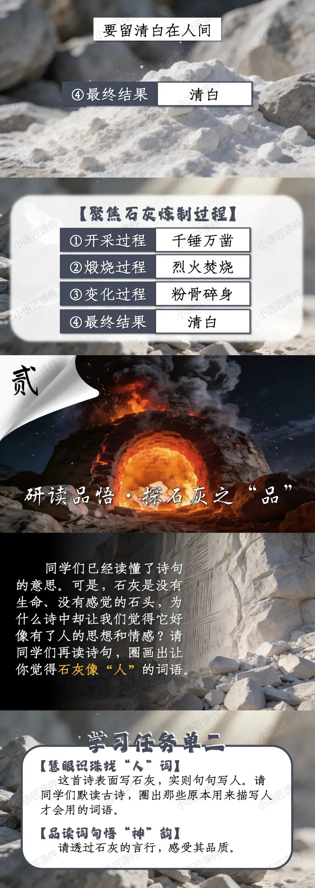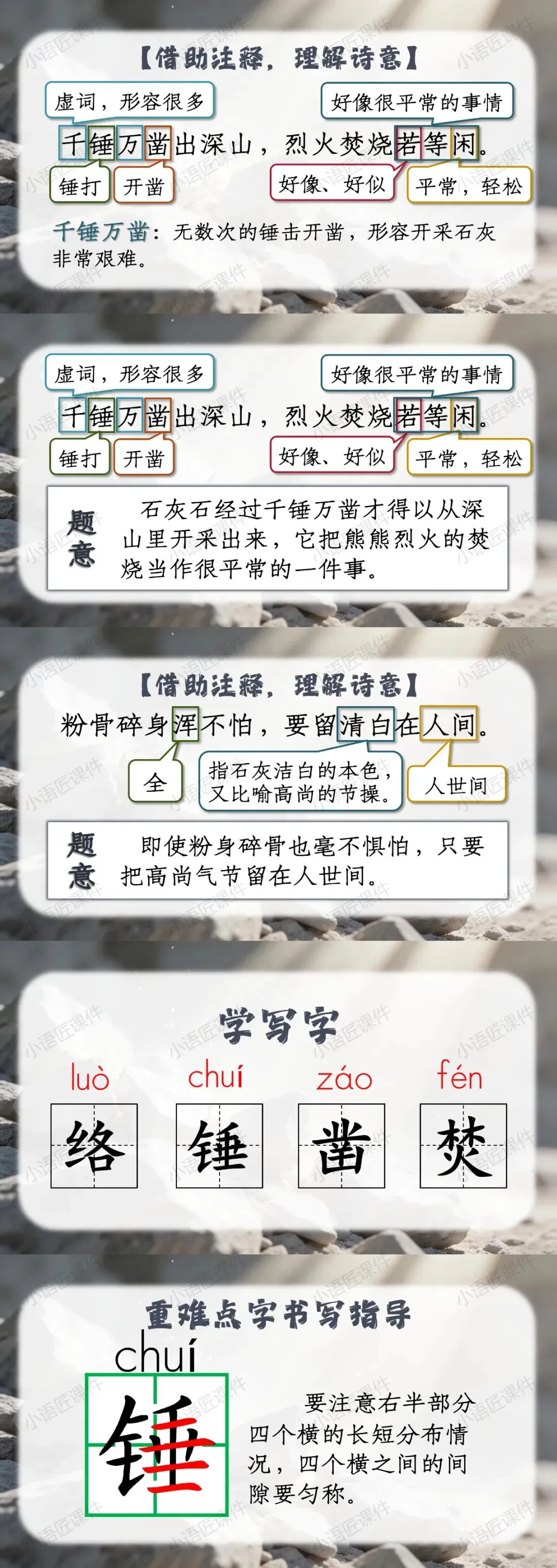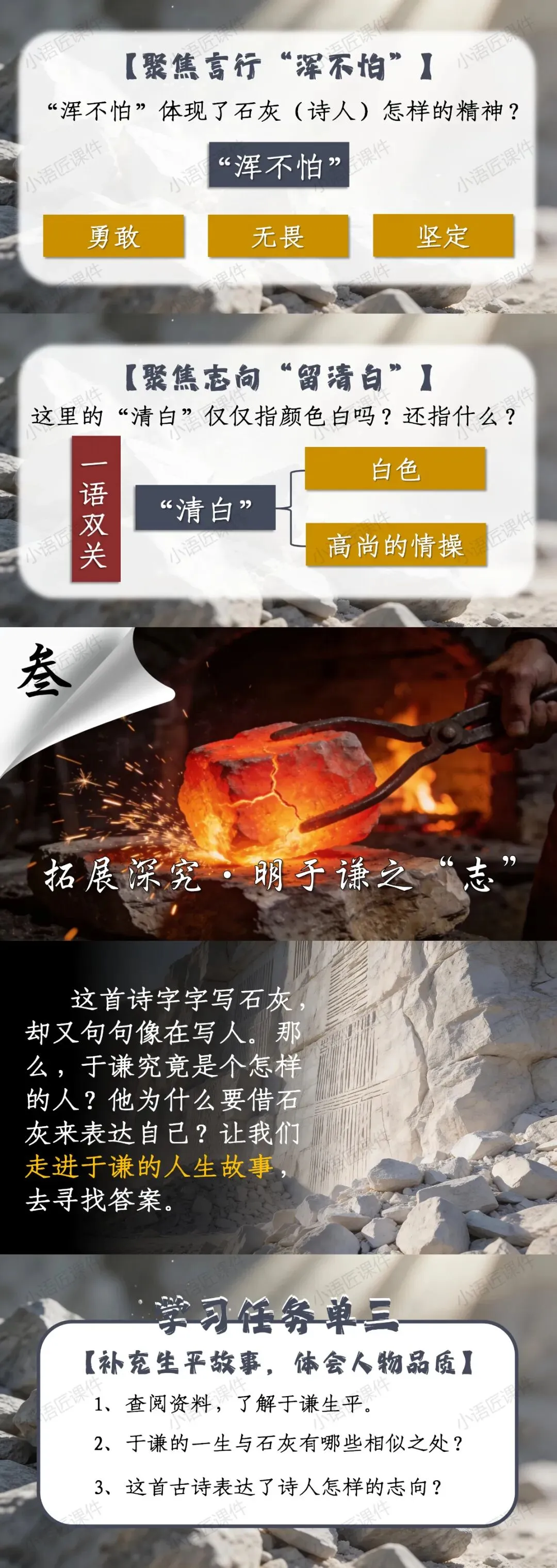 以上便是部编人教版六年级下册《石灰吟》的独家课件的全部内容。