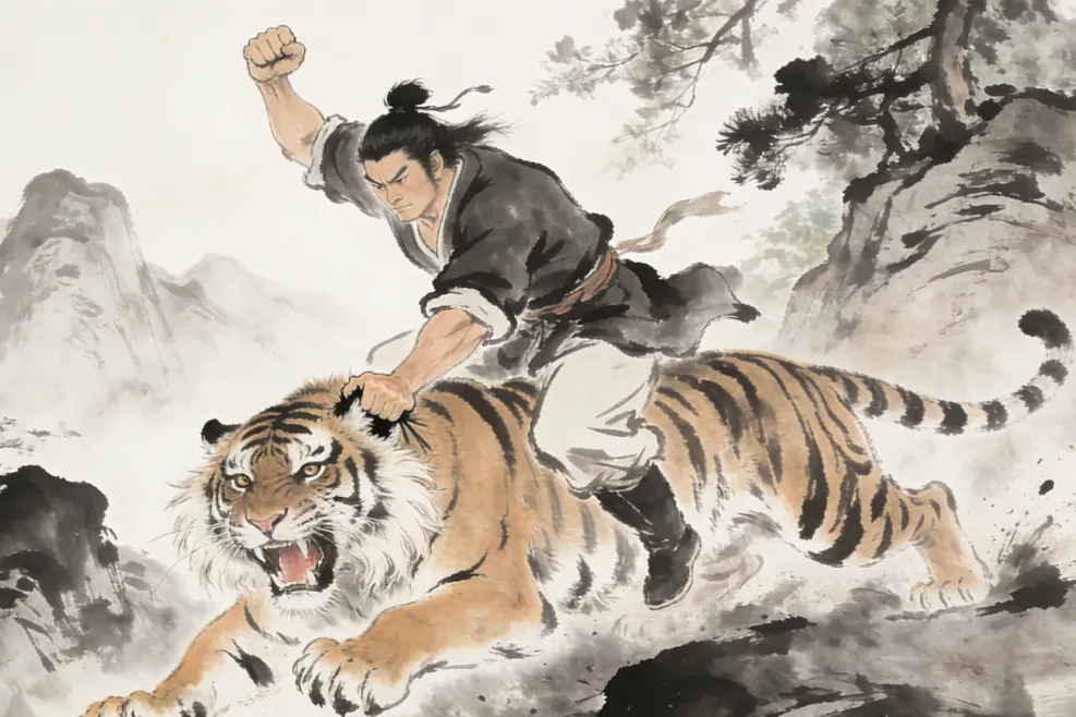 武松景阳冈打虎是英勇无畏的真英雄表现。