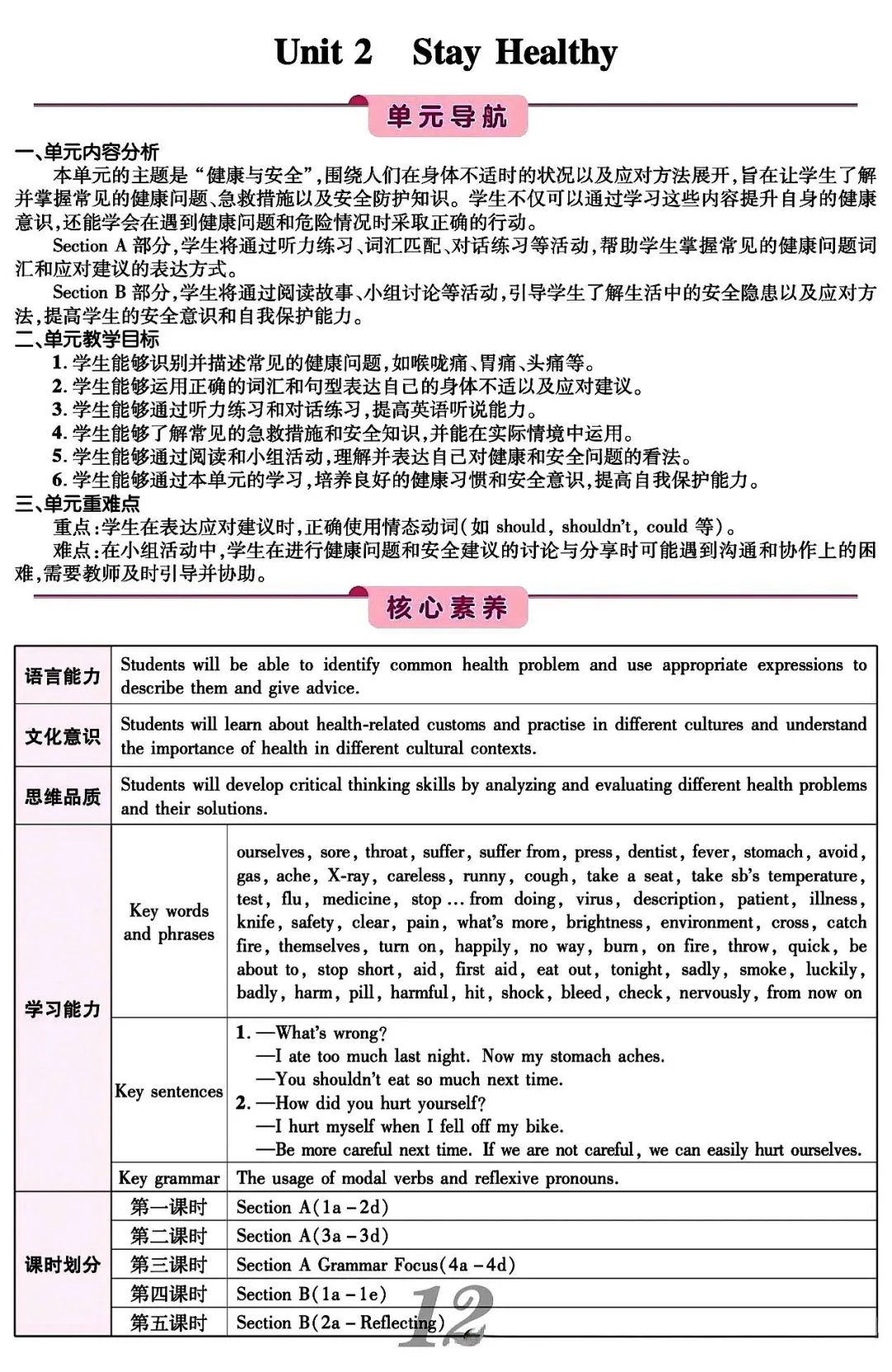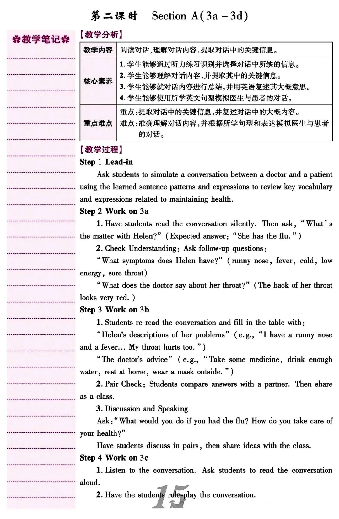本次课围绕“保持健康”主题展开,结合听力与对话,旨在提升学生的语言应用能力。