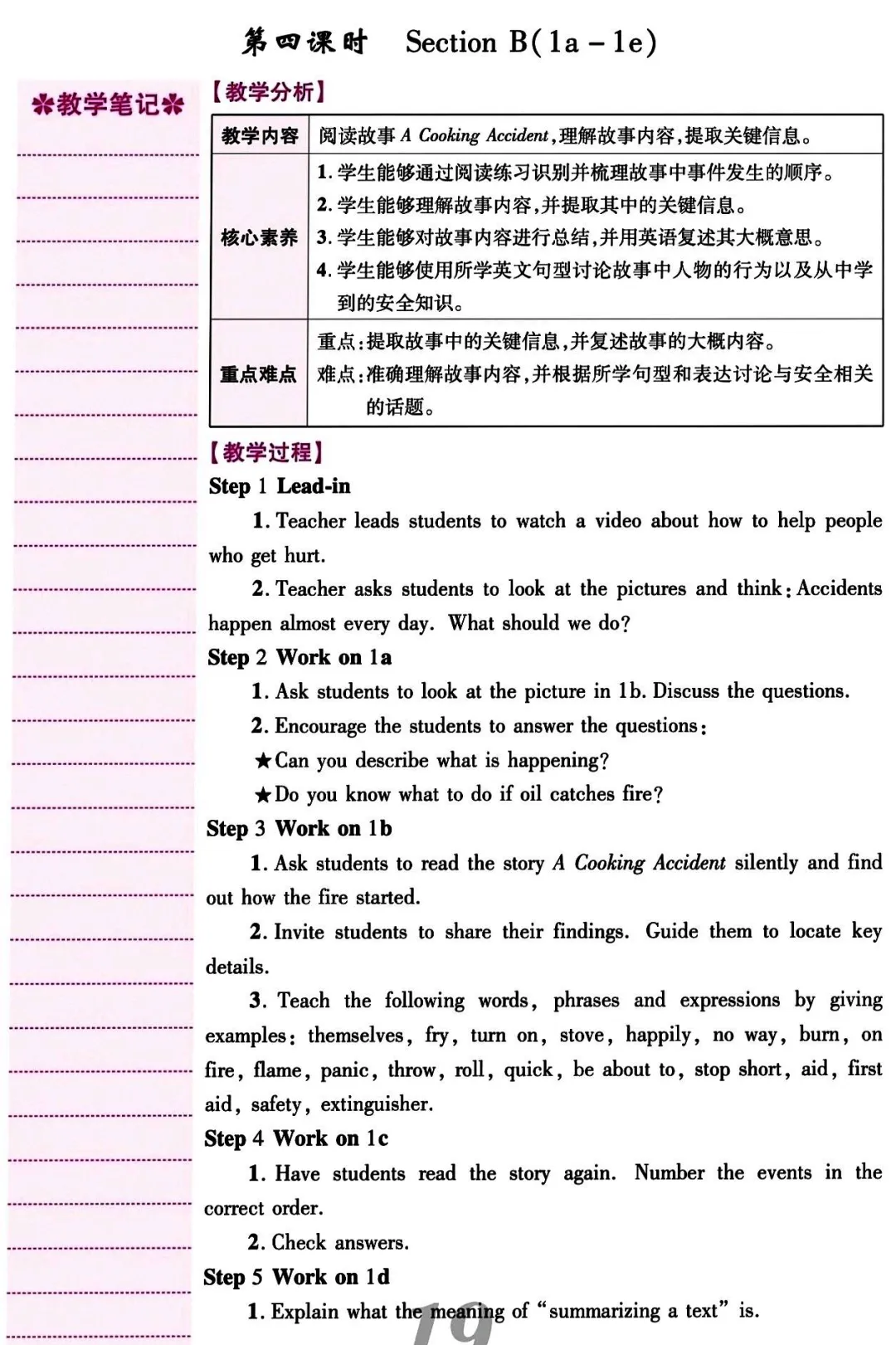 本次阅读课以“一次烹饪事故”为载体,通过文本分析与文化探究培养学生的阅读理解能力,整体教学目标基本达成。(1)一次烹饪事故真实场景引发学生好奇,学生会主动阅读故事,课堂参与度高。(2)从故事发展线的排序到完成短文,逐步推进。(3)讨论环节中,学生讨论“我们应该怎样做来保证我们自己的安全?”