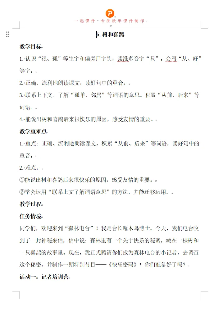 >AI公开课��一下第三单元《树和喜鹊》课件、教案