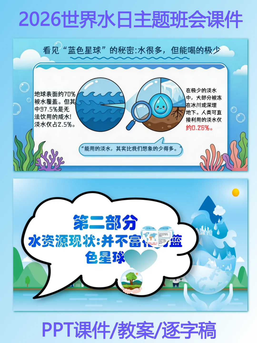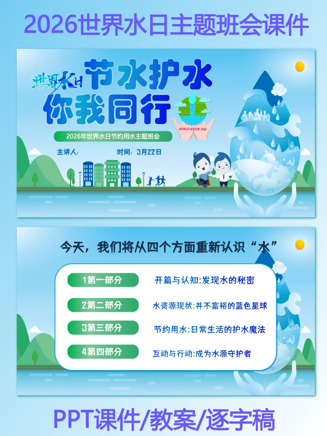 >2026年世界水日主题班会PPT课件|节水护水 你我同行【完整版】