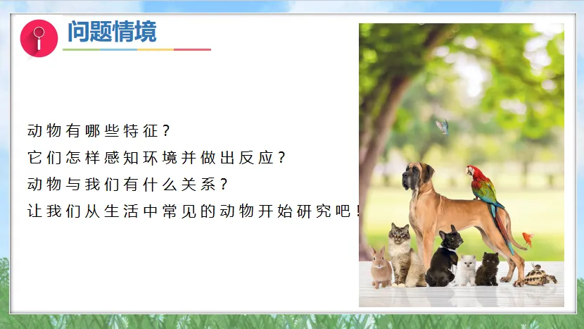 在《常见的动物》一课教学中,我以“动物王国大探秘” 为主题展开。课前准备了涵盖哺乳动物、鸟类、鱼类、昆虫等类别的 50 多张高清动物图片,以及 10 段不同动物活动的短视频,像老虎捕猎、小鸟筑巢、鱼儿游动等。课堂上,通过播放视频引发学生兴趣,随后展示图片让学生识别并描述特征。从反馈来看,85% 的学生能准确说出常见动物如狗、猫、鸡的基本特征,60% 的学生能区分不同类别动物的典型特点。