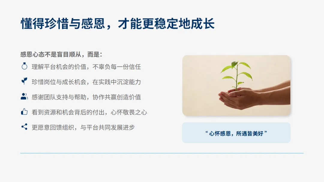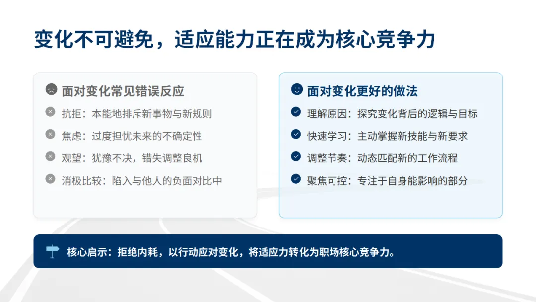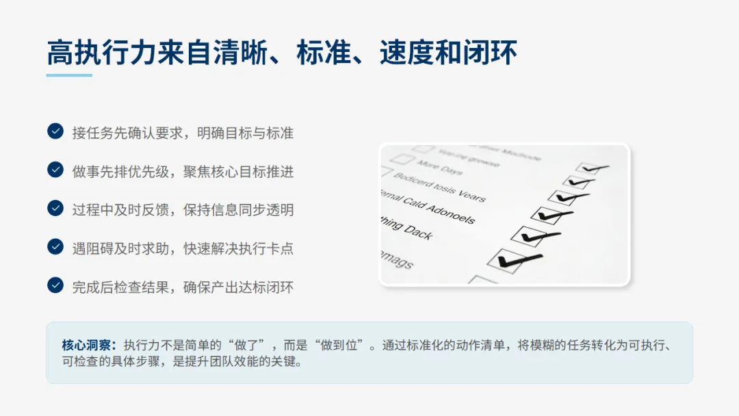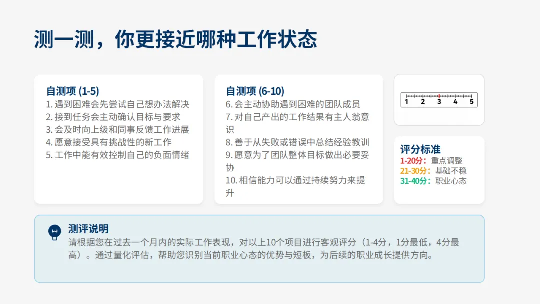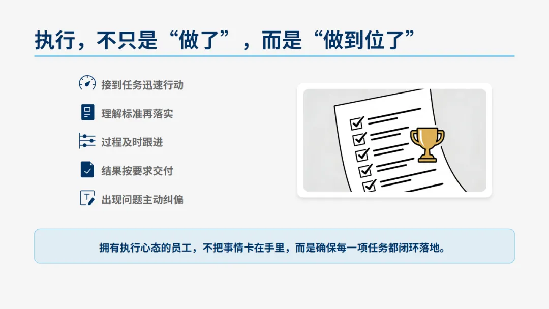 在知识更新周期只有18个月的今天,停止学习就是退步。职业化的员工会主动规划自己的学习路径,把每一个工作任务都视为能力升级的机会。