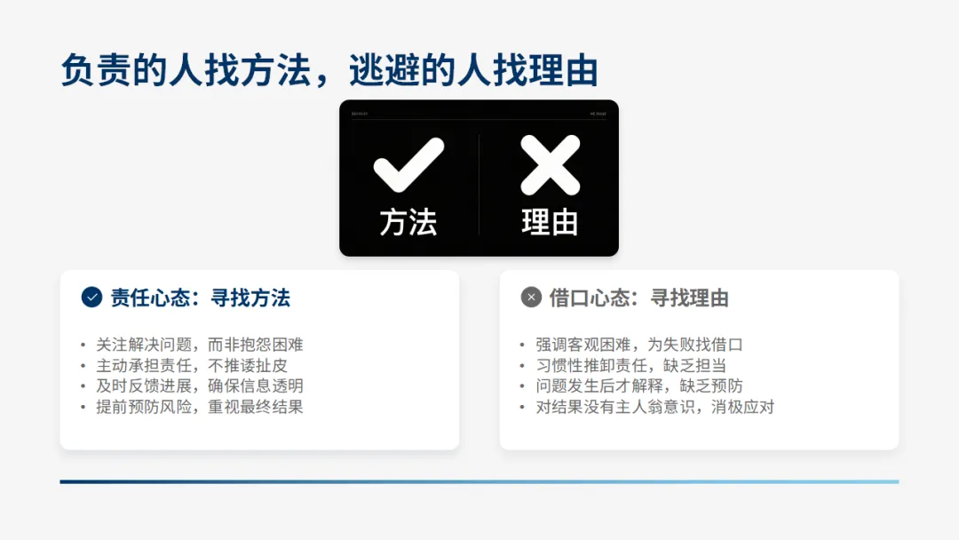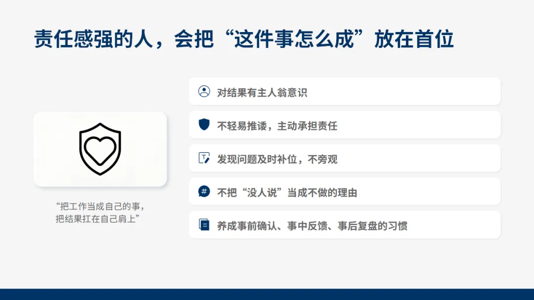 责任心态的核心是"主人翁意识"。心理学上有个概念叫"心理所有权"(Psychological Ownership),指的是个体将组织或工作视为自己延伸部分的程度。高心理所有权的员工,看到地上的垃圾会主动捡起,哪怕那不是他的卫生区域;发现流程有问题会主动优化,哪怕那不是他的职责范围。