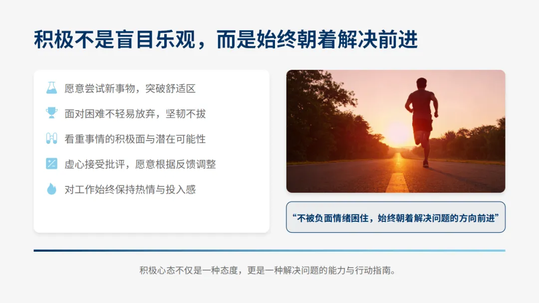 ,具有更强的专业性和稳定性。它不是你今天心情好就积极,明天心情不好就消极的波动状态,而是一种职业化的、稳定的心理特质。