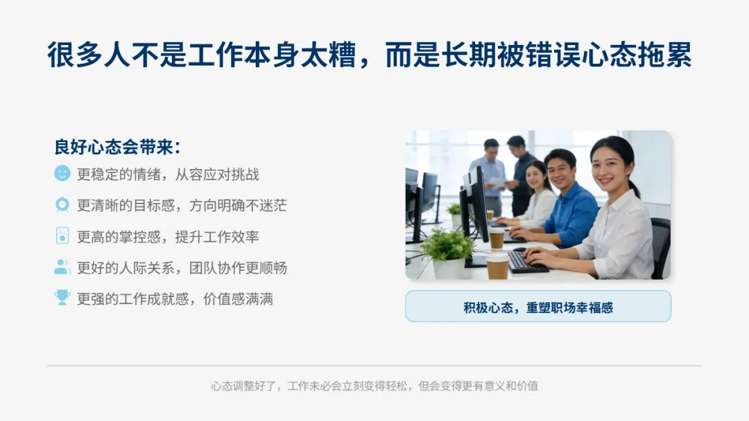 很多人工作多年没有突破,往往不是能力不够,而是被错误的心态模式困住了。就像电脑中了病毒,硬件再好也无法流畅运行。下面我们剖析五种最常见的职场消极心态。