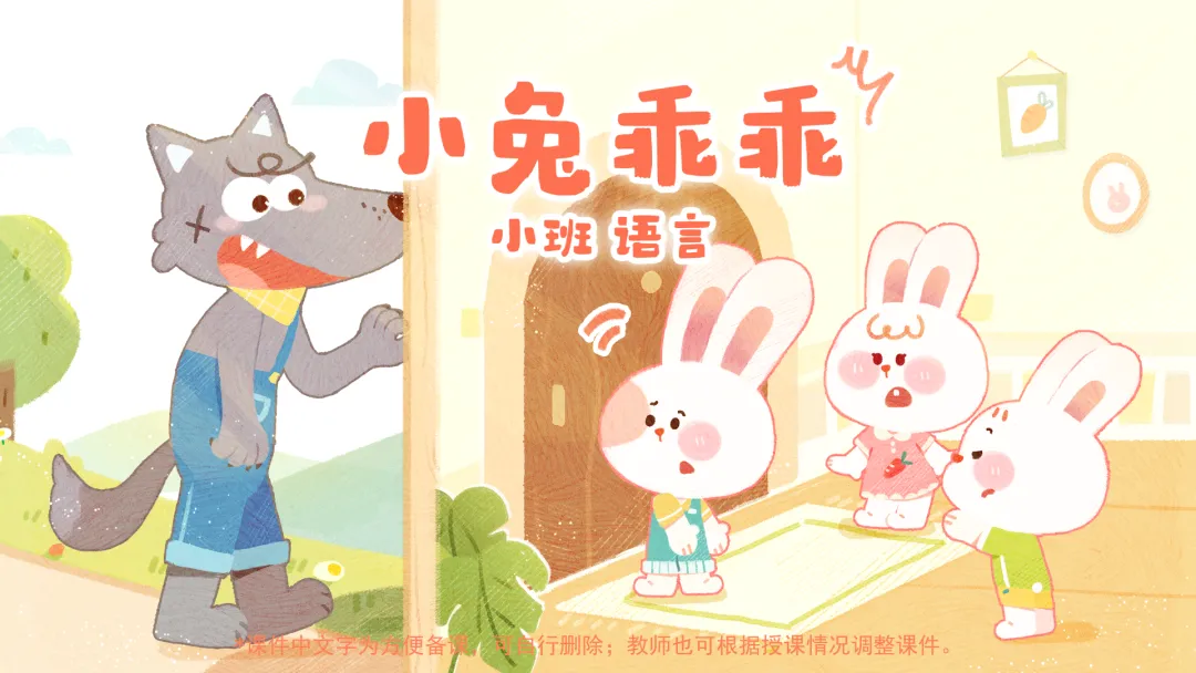 ——《小兔乖乖》儿歌里的故事可真精彩呀,老师想和你们一起唱一唱这首好听的儿歌,你们愿意吗?