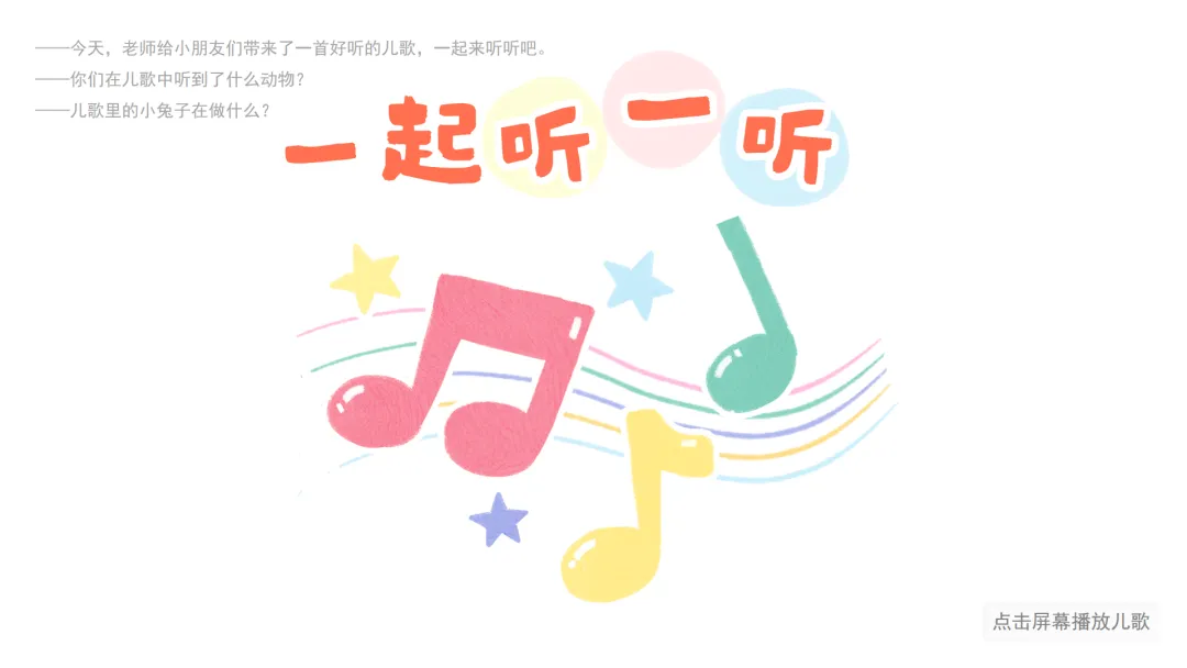 ——今天,老师给小朋友们带来了一首好听的儿歌,名字叫做《小兔乖乖》,我们一起来听听吧。
