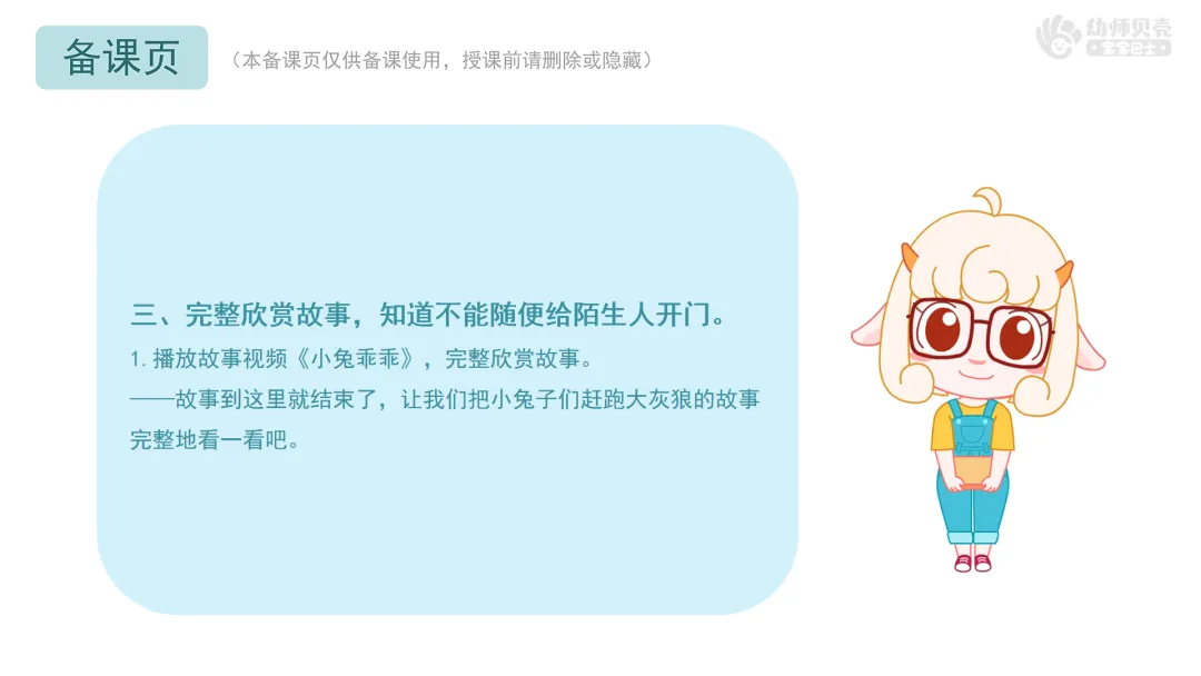 三、完整欣赏故事,知道不能随便给陌生人开门。