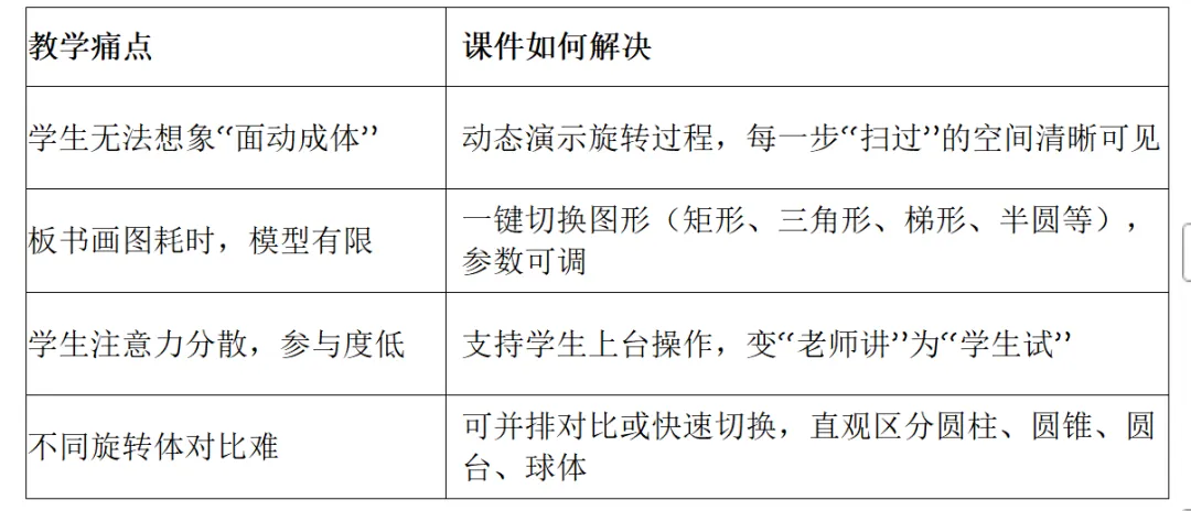 本课件精准回应一线数学教师在旋转体教学中的4个常见难题: