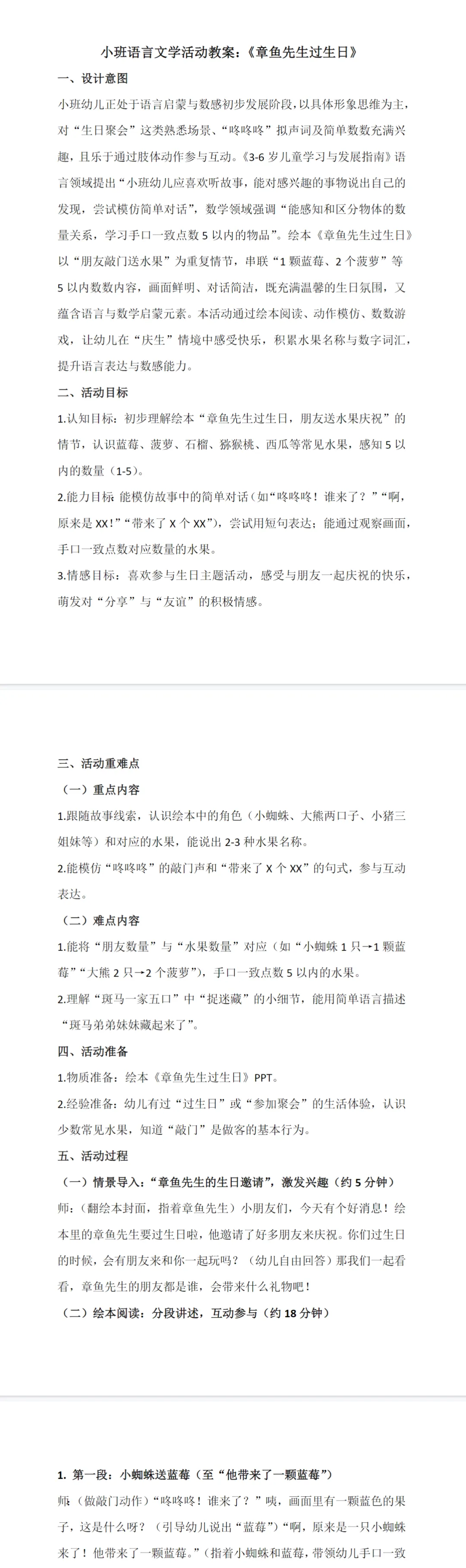 幼儿园公开课小班语言《章鱼先生过生日》教案+课件+视频