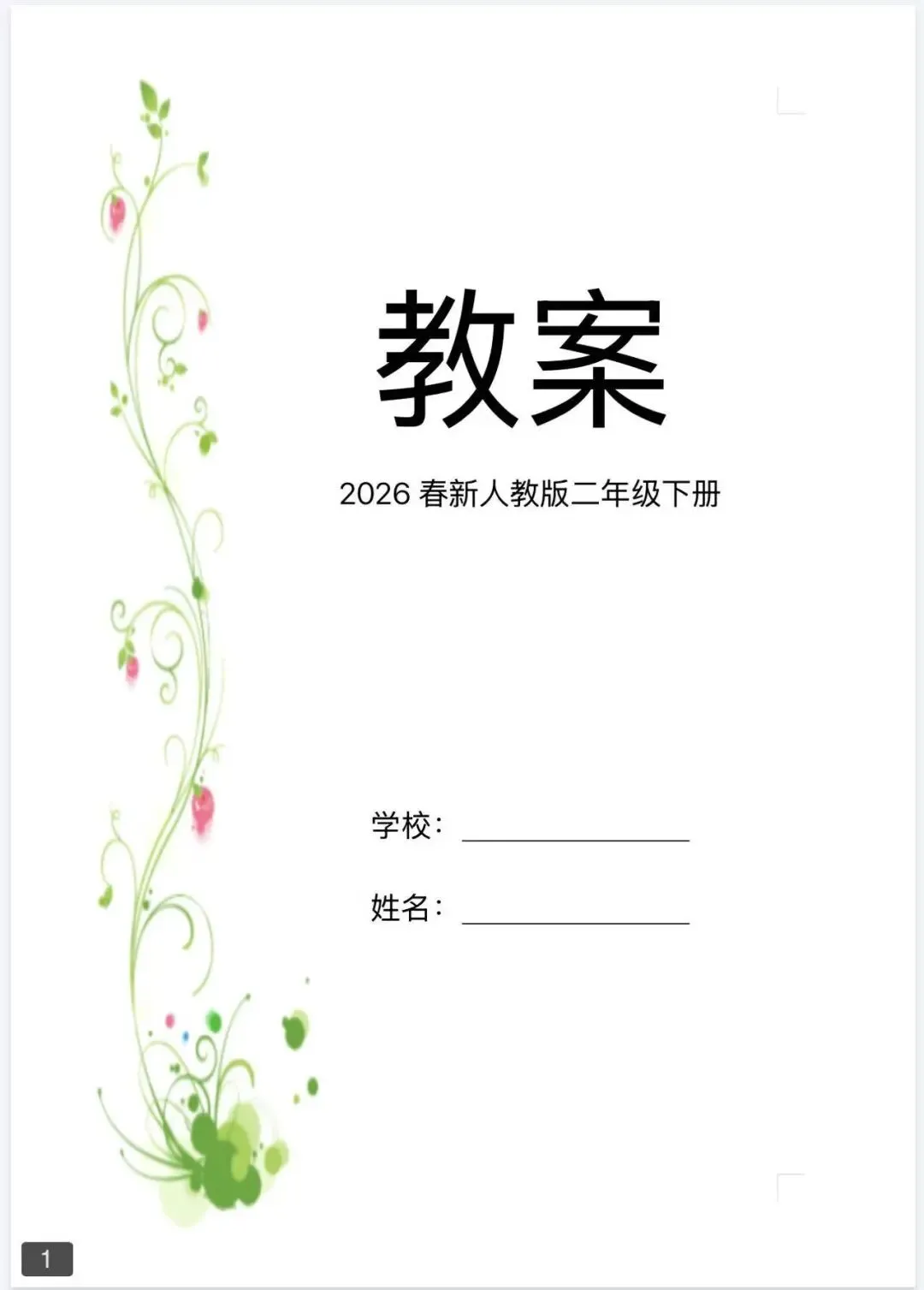 26春人教版数学二年级下册核心素养教案,含课后反思(免费下载)