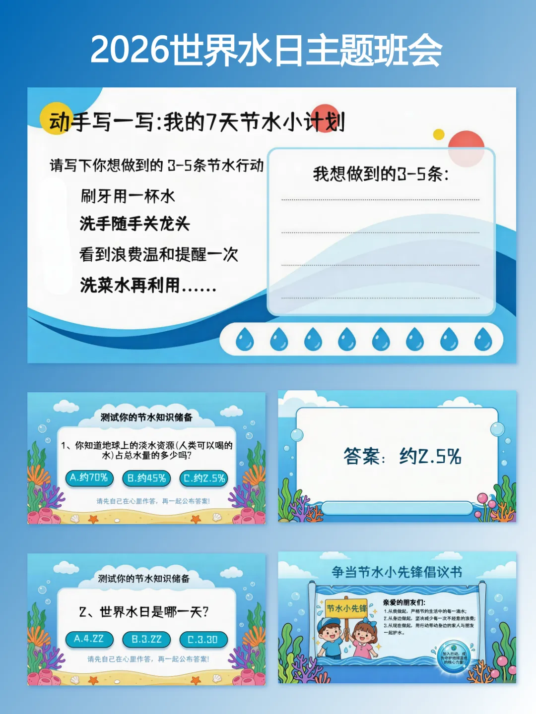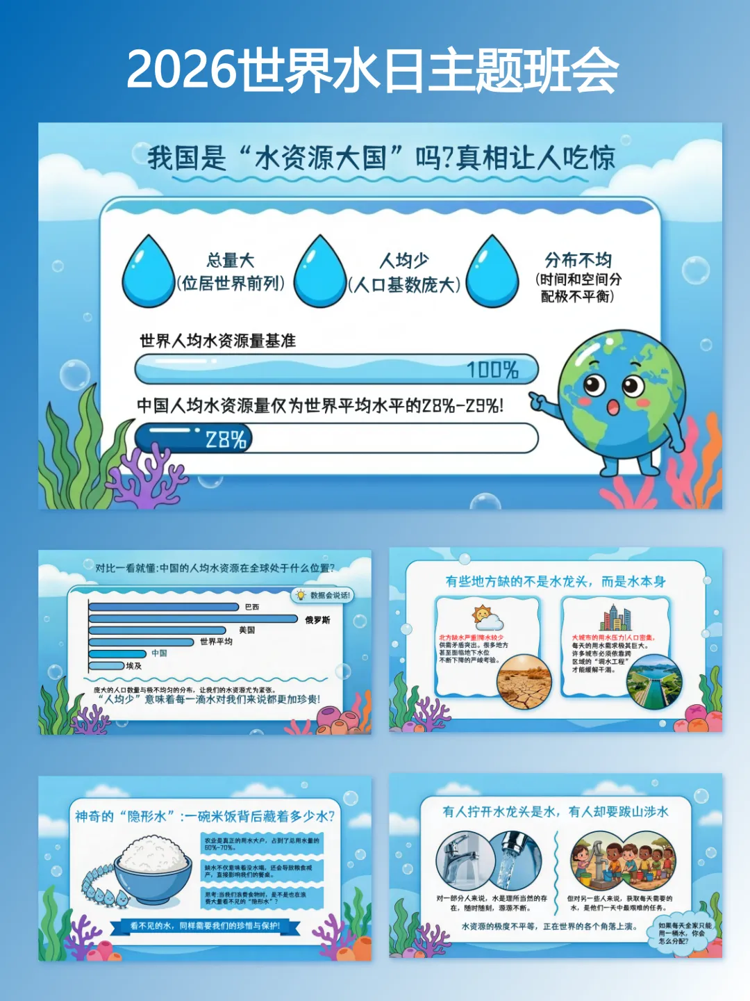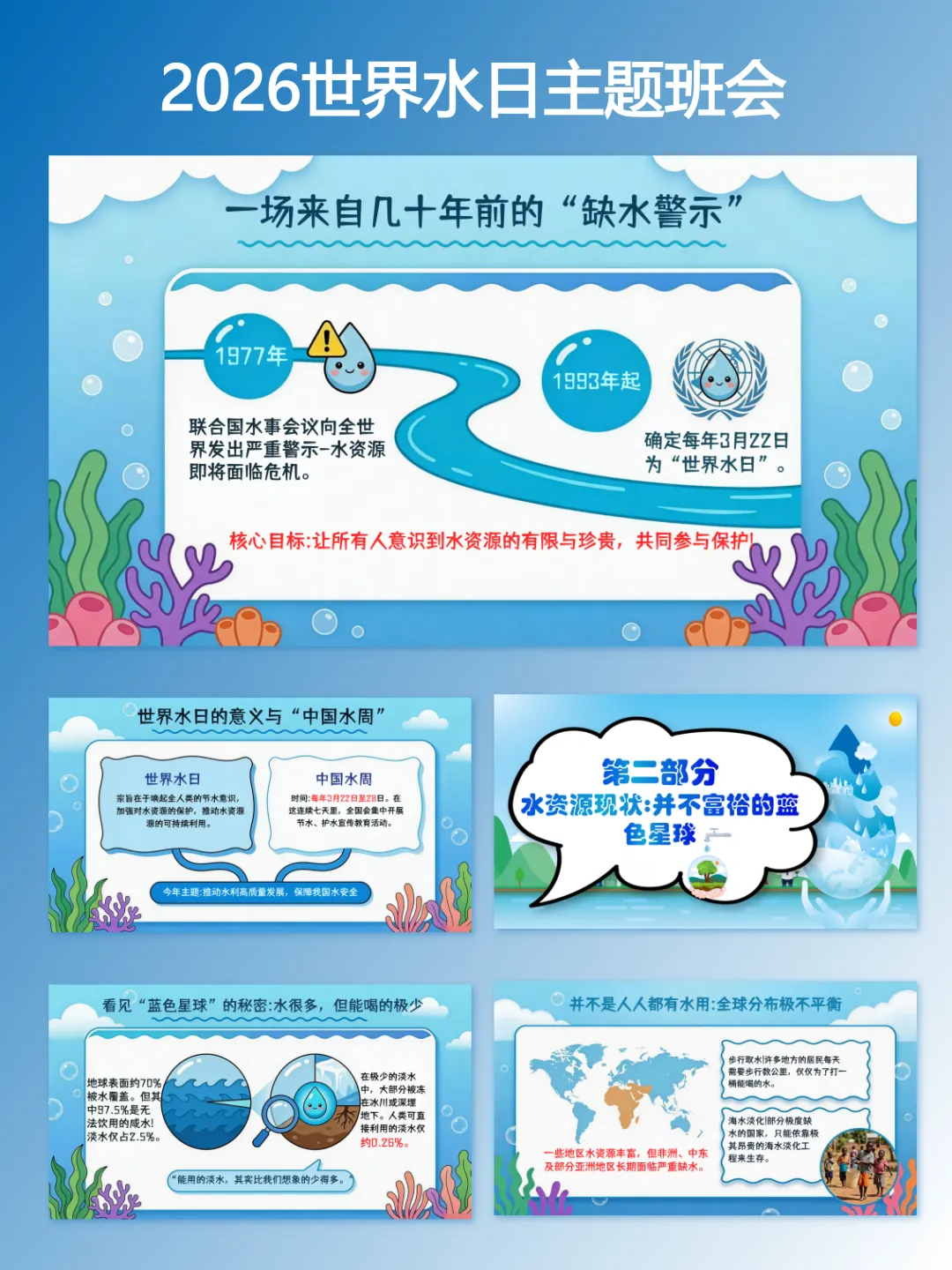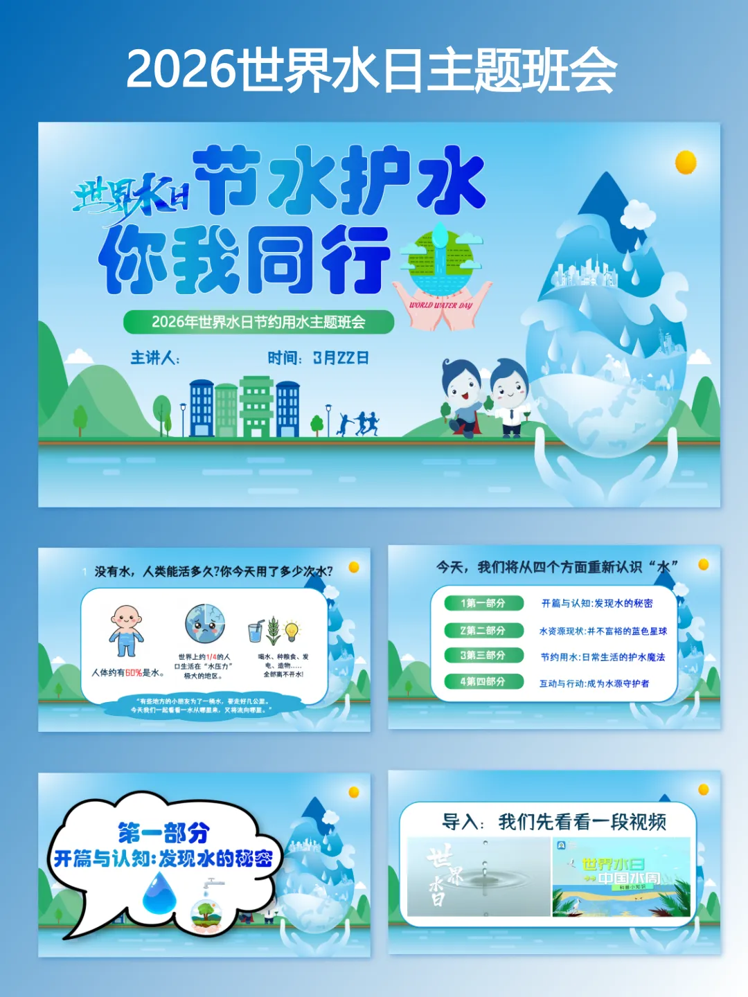 2026年世界水日主题班会课件教案逐字稿|以点滴行动,护碧水长流【完整版】