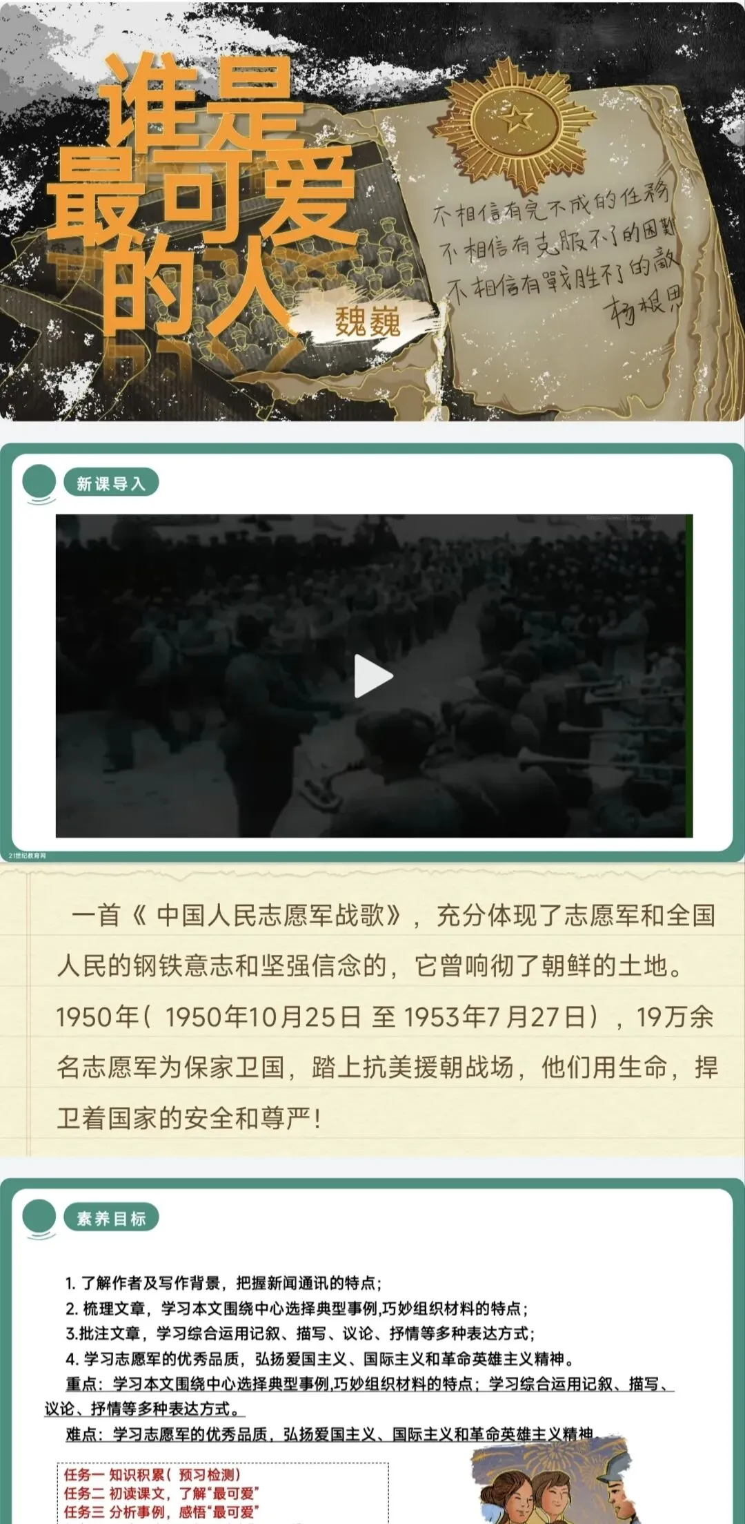 >七下《谁是最可爱的人》任务型课件,这样讲太赞了!