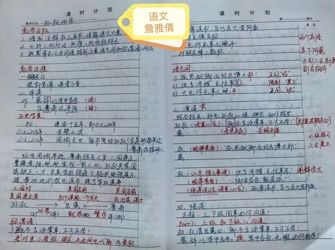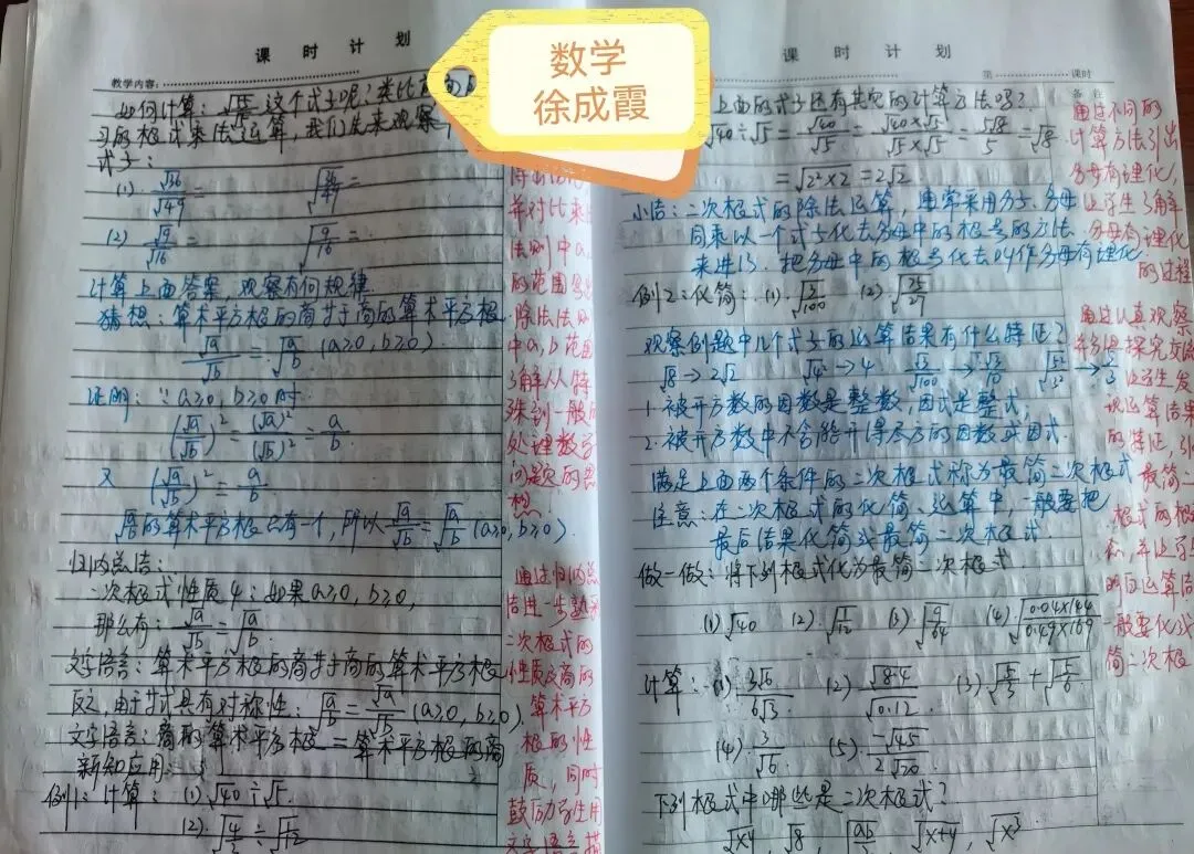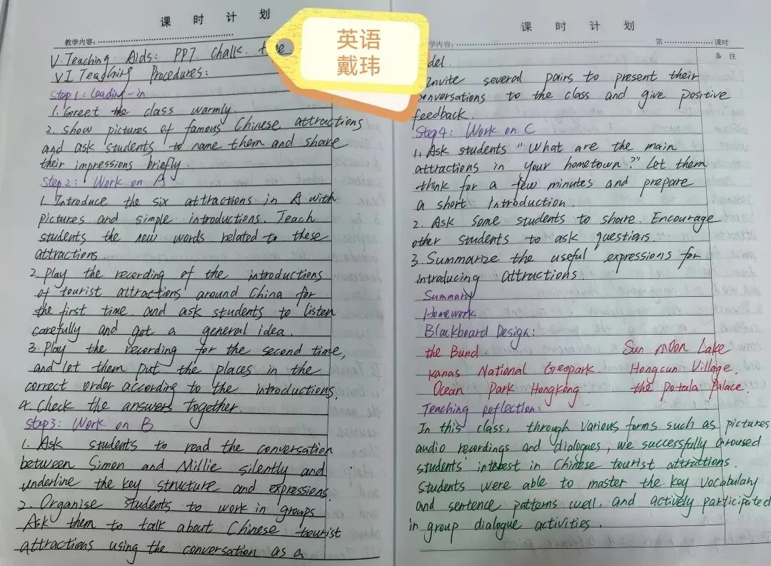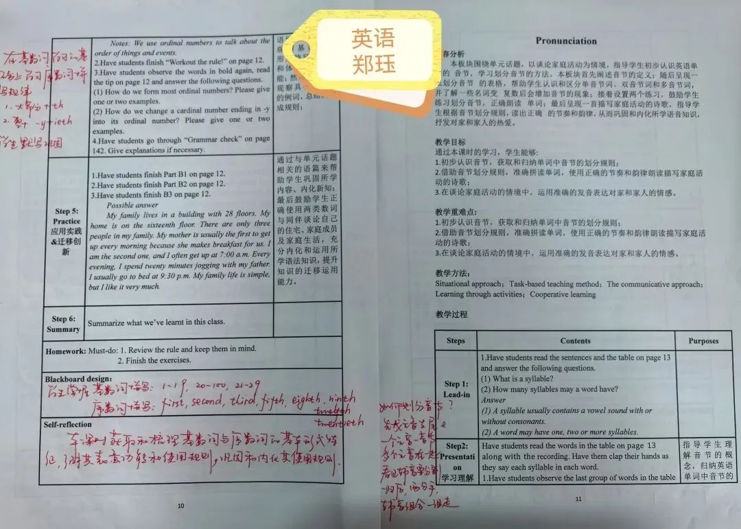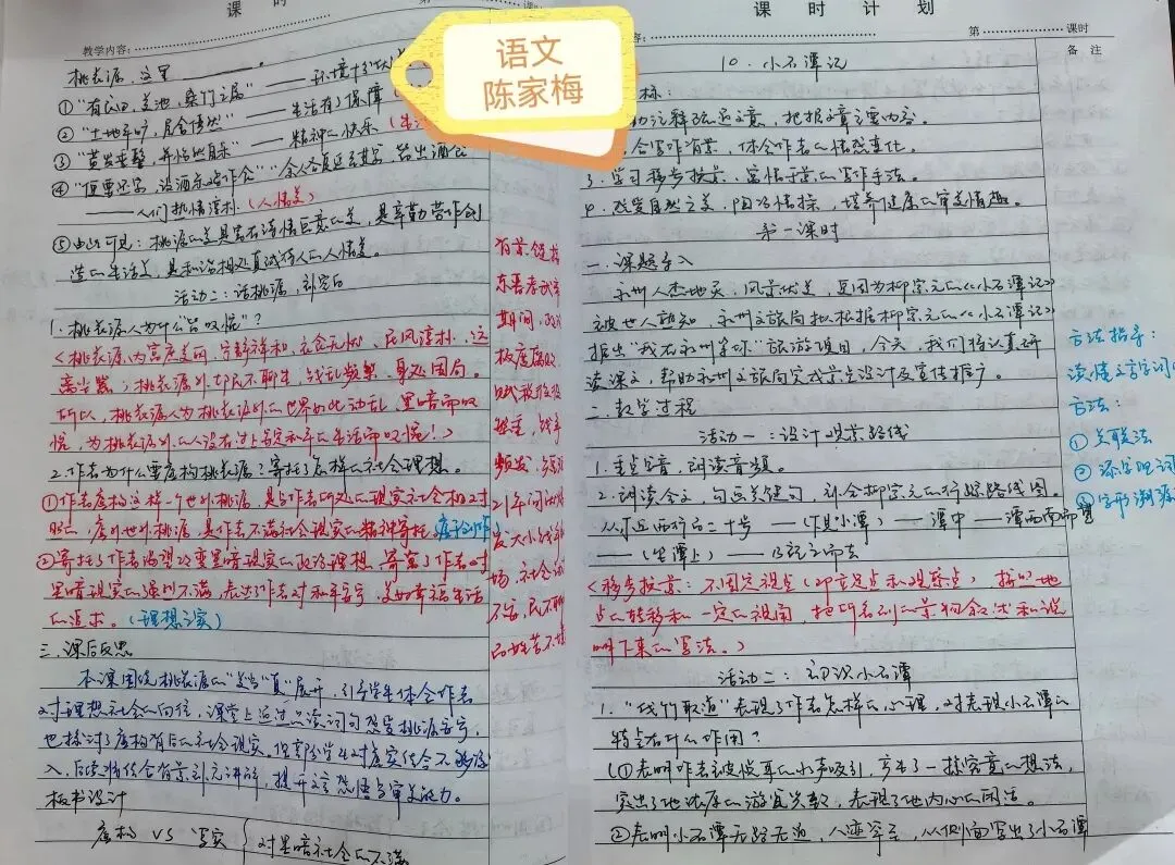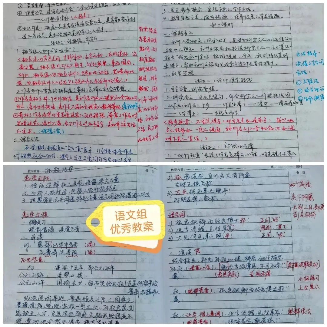 全体教师紧扣新课标、结合学生特点设计教案:青年教师徐成霞、王金波老师进步显著,手写教案工整、反思扎实;陈家梅、戴玮、王彩芸、尚智泉、汪烽、陶明逊、周剑、吴敏彰等老师巧用双色笔标注重点;资深教师教案完备、目标精准,宋先林、严兰平、唐双喜等老师深度融合新课标,树立了备课典范。