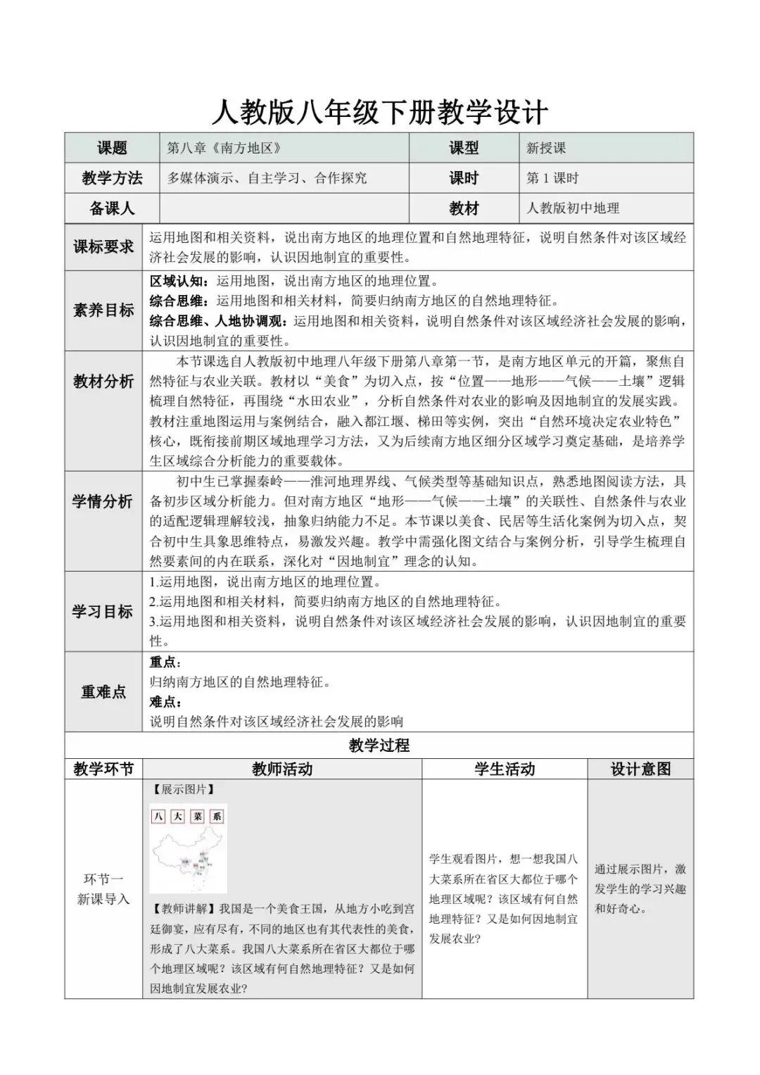 2026春人教版八年级下册(地理)配套教案+课件ppt+导学案,word可编辑打印!