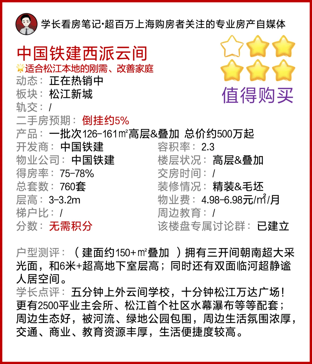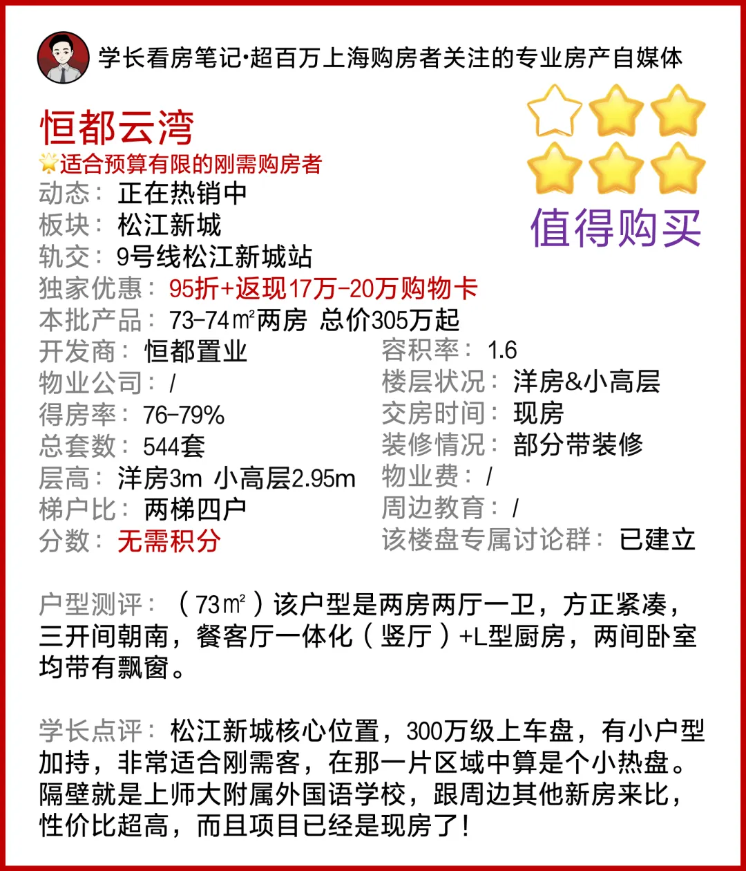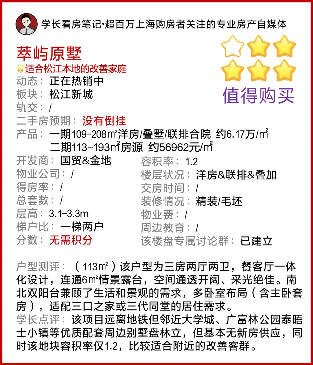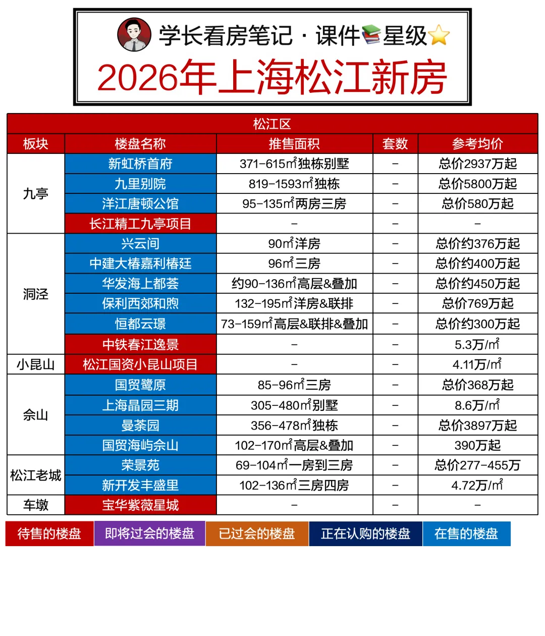 最新消息:松江新城现房「上尚缘」三期正在热销中!建面约87-160㎡两房到四房,均价约5.73万/㎡!最新消息:总价约376万起上车低密墅质洋房!「香港兴业·兴云间」剩余少量90㎡洋房火热在售中!最新消息:松江洞泾「中建大椿嘉利椿廷」推出建面约96㎡三房,总价约390万起!最新消息:上海TOP级销冠王「华发海上都荟|云间印」双轨交城市芯+全维配套,必冲的海派奢居!最新消息:超低容积率的海派住宅「保利西郊和煦|领墅」五期正在热销中!推出建面约132-196㎡叠加&联排,均价约65677元/㎡!最新消息:松江新桥「恒都云璟」正在热销中!推出建面约72-159㎡洋房&叠加&联排!均价约5.7万/㎡!最新消息,松江小昆山「松江国资小昆山项目」等待入市!房地联动价约41100元/㎡!最新消息,400万级无对手!臻稀滨水实景示范区+国企准现房 错过难觅 !国贸鹭原五期正在热销中!最新消息,最新消息,松江佘山「上海晶园」四期设计方案规划公示!仅128户!最新消息,松江佘山「曼荼园」正在热销中,在售建面约356-478㎡独栋,总价3897-5679万!最新消息:2025年不得不看的爆款!佘山断供级墅居,「国贸海屿佘山」在售中,总价仅约400万起!最新消息:松江地铁口700米现房「荣景苑」正在热销中!推出建面约69-104㎡一房到三房,总价约277-450万!最新消息,松江老城「新开发丰盛里」正在热销中!推出建面约102-136㎡三房四房,均价约4.7万/㎡!内附一房一价表!