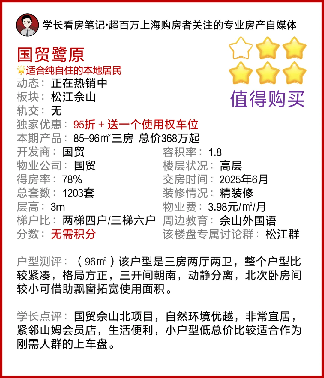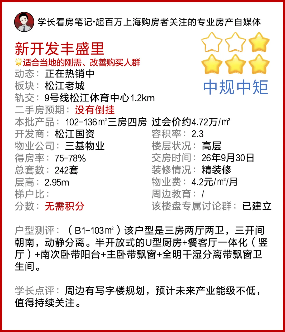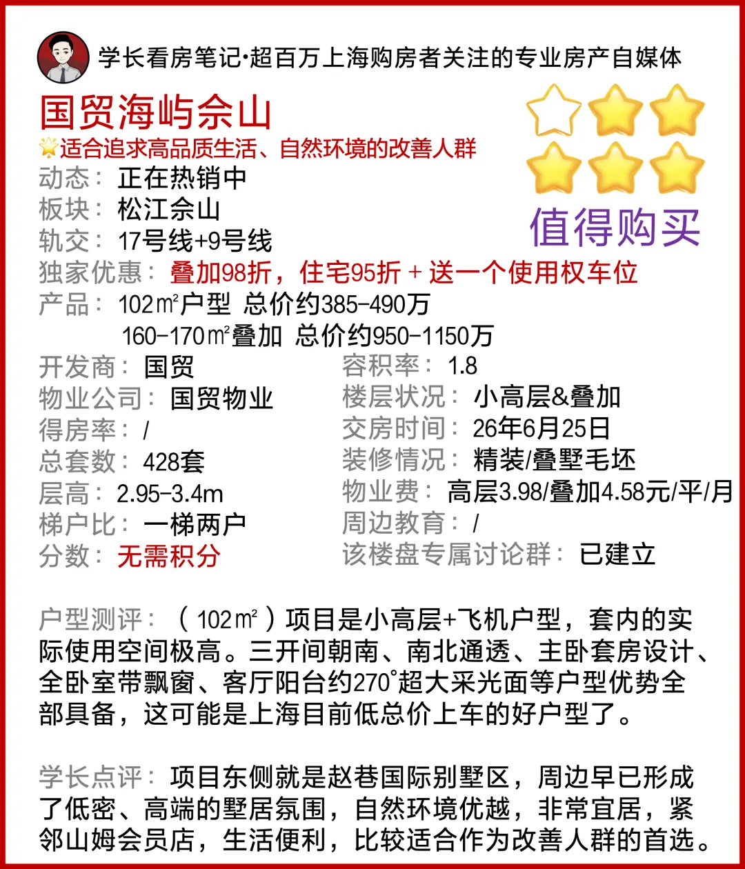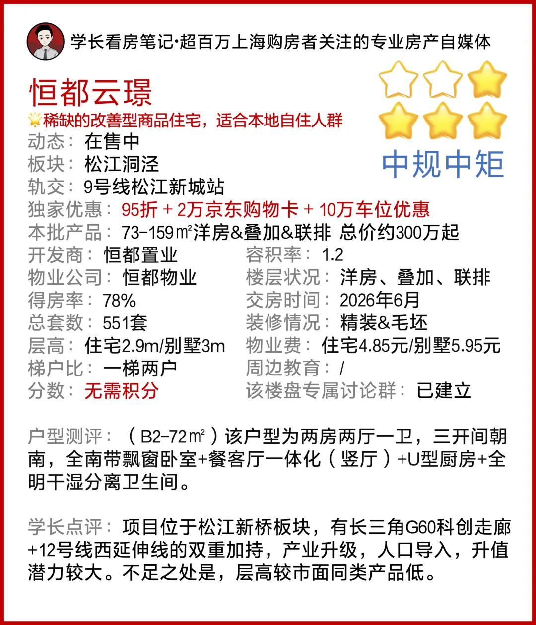最新消息:松江新城现房「上尚缘」三期正在热销中!建面约87-160㎡两房到四房,均价约5.73万/㎡!最新消息:总价约376万起上车低密墅质洋房!「香港兴业·兴云间」剩余少量90㎡洋房火热在售中!最新消息:松江洞泾「中建大椿嘉利椿廷」推出建面约96㎡三房,总价约390万起!最新消息:上海TOP级销冠王「华发海上都荟|云间印」双轨交城市芯+全维配套,必冲的海派奢居!最新消息:超低容积率的海派住宅「保利西郊和煦|领墅」五期正在热销中!推出建面约132-196㎡叠加&联排,均价约65677元/㎡!最新消息:松江新桥「恒都云璟」正在热销中!推出建面约72-159㎡洋房&叠加&联排!均价约5.7万/㎡!最新消息,松江小昆山「松江国资小昆山项目」等待入市!房地联动价约41100元/㎡!最新消息,400万级无对手!臻稀滨水实景示范区+国企准现房 错过难觅 !国贸鹭原五期正在热销中!最新消息,最新消息,松江佘山「上海晶园」四期设计方案规划公示!仅128户!最新消息,松江佘山「曼荼园」正在热销中,在售建面约356-478㎡独栋,总价3897-5679万!最新消息:2025年不得不看的爆款!佘山断供级墅居,「国贸海屿佘山」在售中,总价仅约400万起!最新消息:松江地铁口700米现房「荣景苑」正在热销中!推出建面约69-104㎡一房到三房,总价约277-450万!最新消息,松江老城「新开发丰盛里」正在热销中!推出建面约102-136㎡三房四房,均价约4.7万/㎡!内附一房一价表!