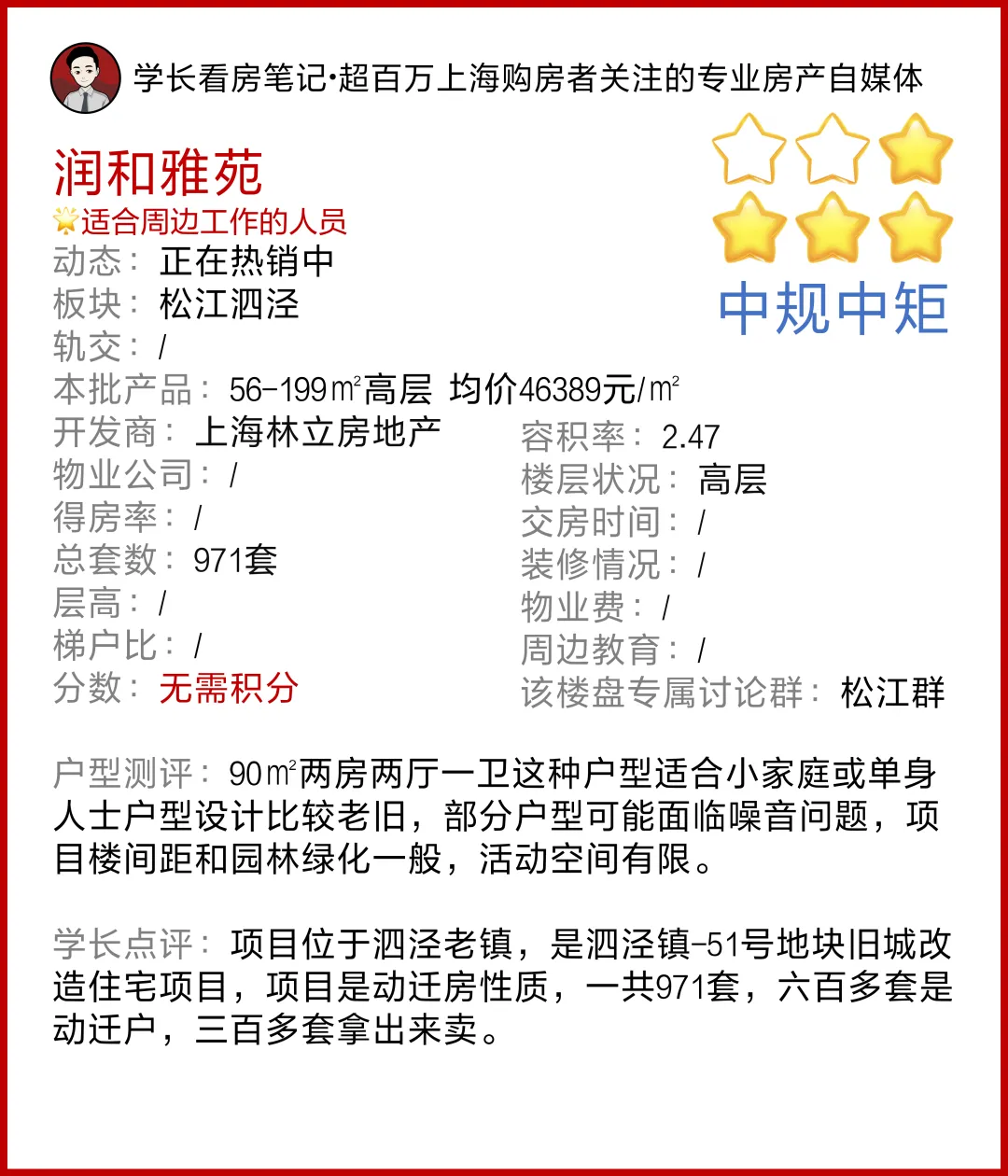一房一价表发布!松江泗泾「润和雅苑」在售中!推出建面约56-199㎡高层!