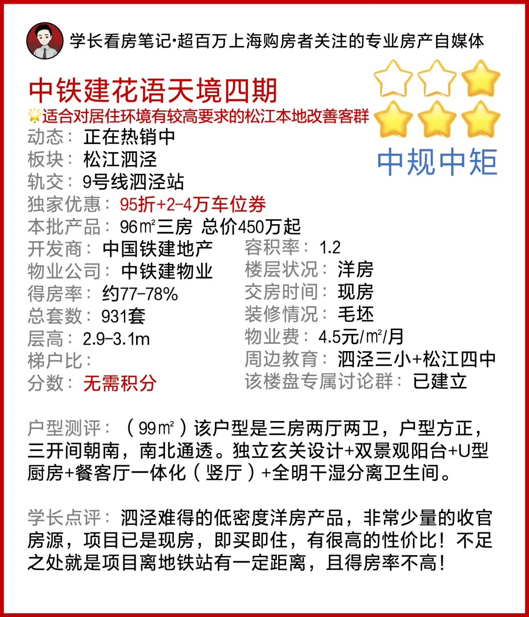 总价约450万起置业9站徐家汇轨交洋房!容积率约1.2「中国铁建花语天境」即将清盘!
