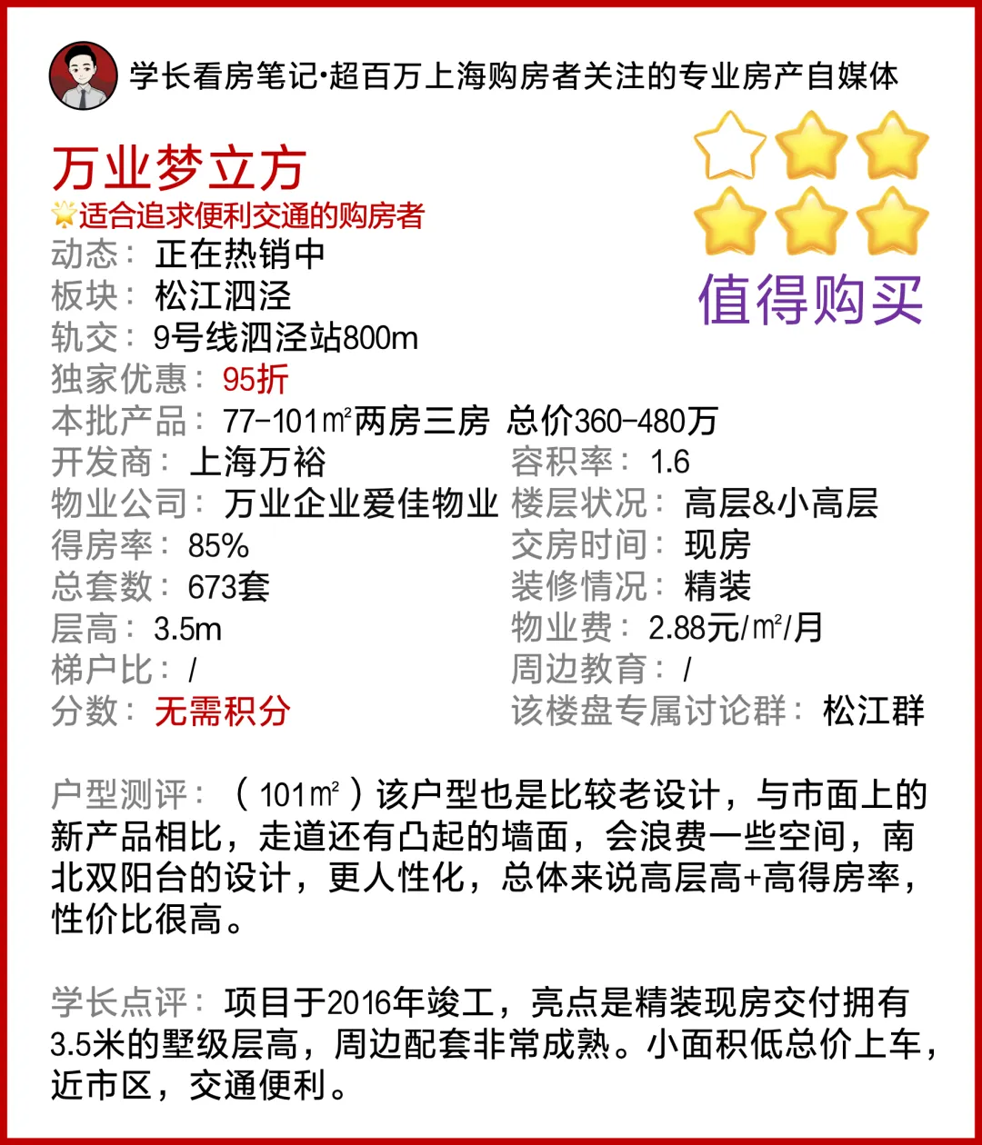 最新消息,松江泗泾「万业梦立方」正在热销中!在售建面约77-101㎡两房三房,总价360-480万!「招商时代潮派」