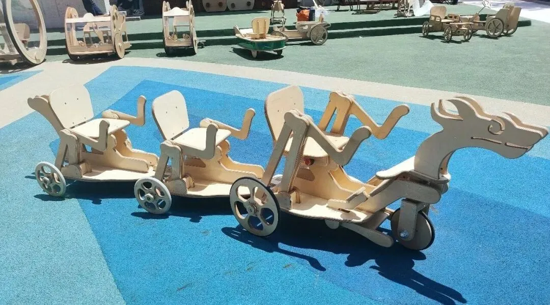•玩法:幼儿分组驾驶龙头车、龙身车、龙尾车,连成“旱地龙舟”队伍,协同发力前进,培养集体协作意识。