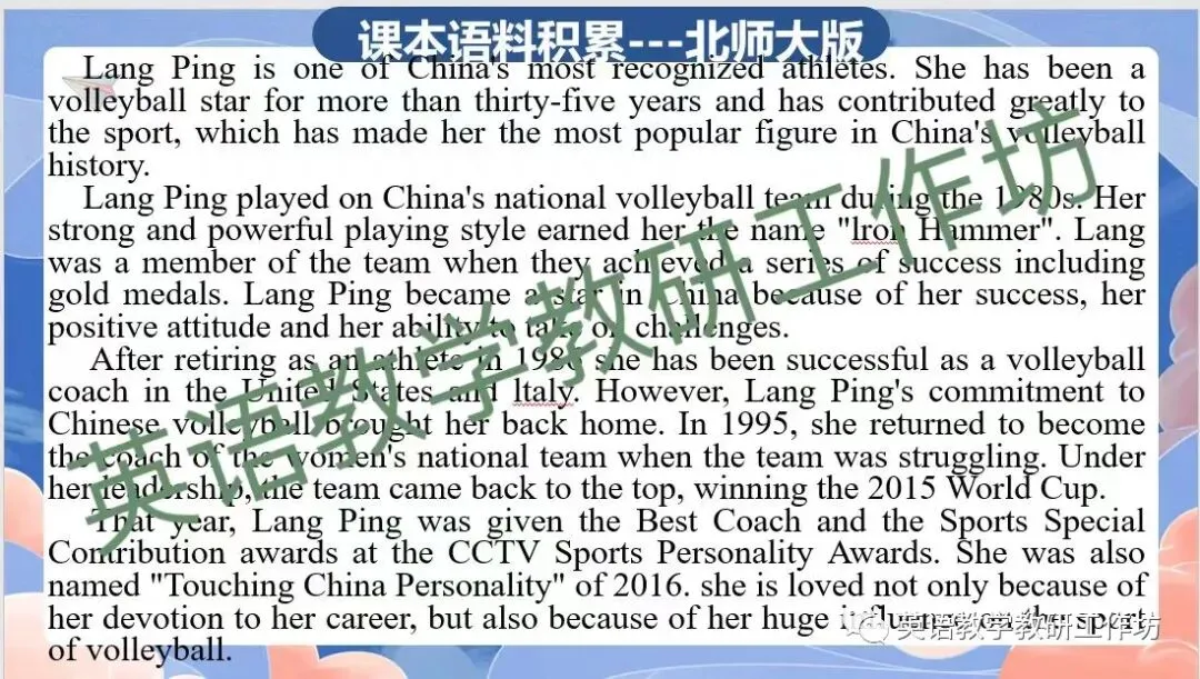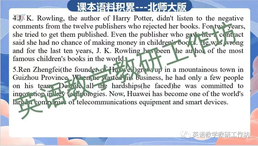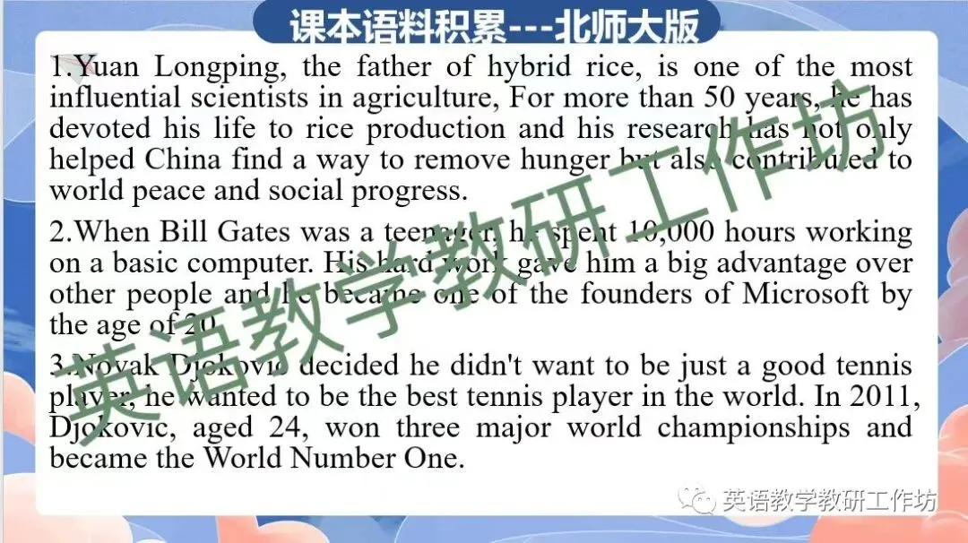 今日分享:【北师大版必修二】Unit 6 The Admirable--人物类写作:最钦佩的人
