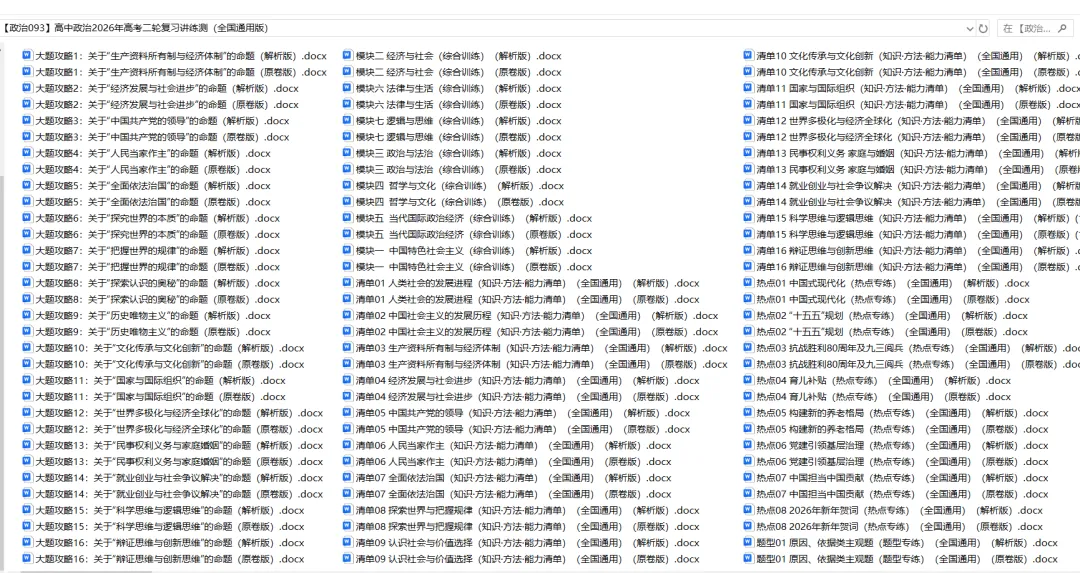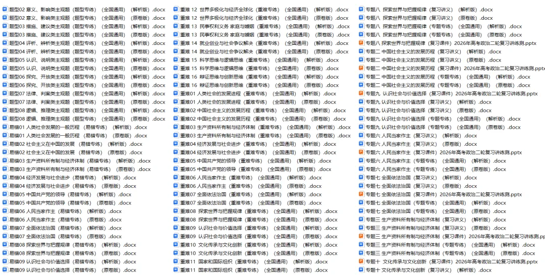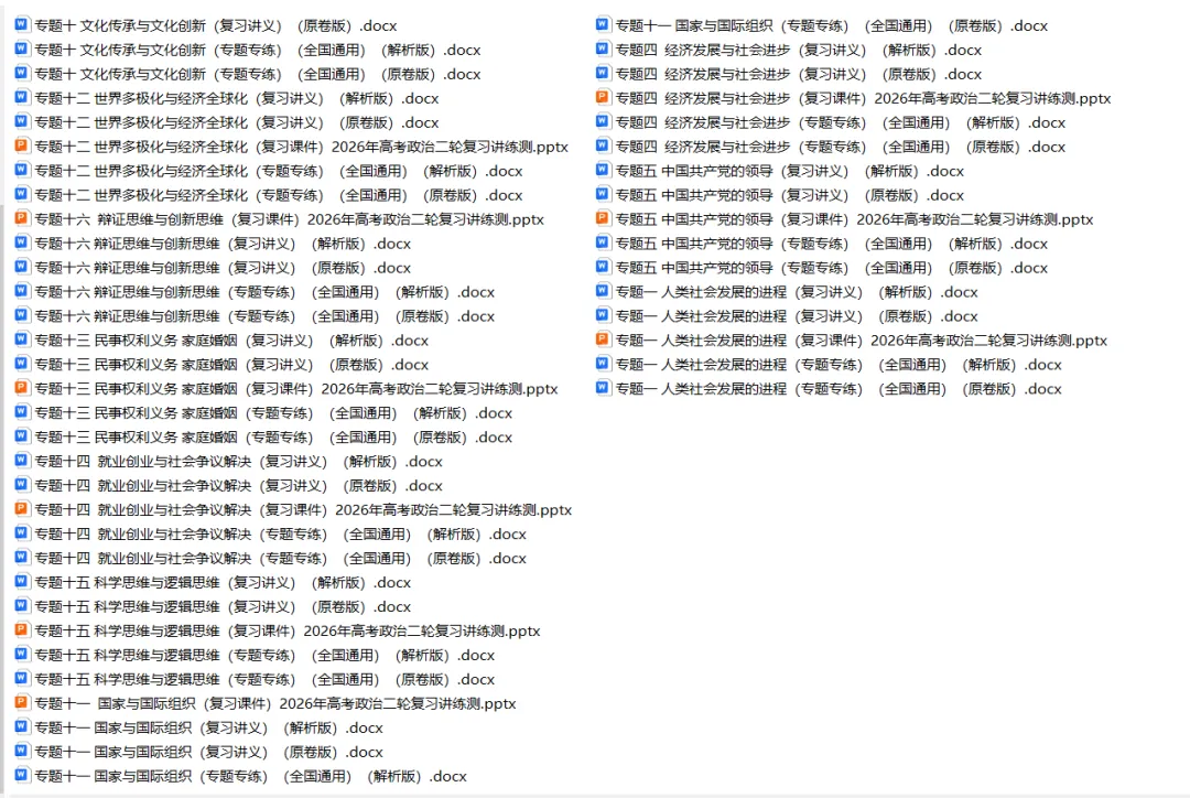 今天思齐给同学们整理了高中政治——2026年高考二轮复习讲义课件练习题(全国通用版)。家有高中生的家长可以给孩子下载打印一份。