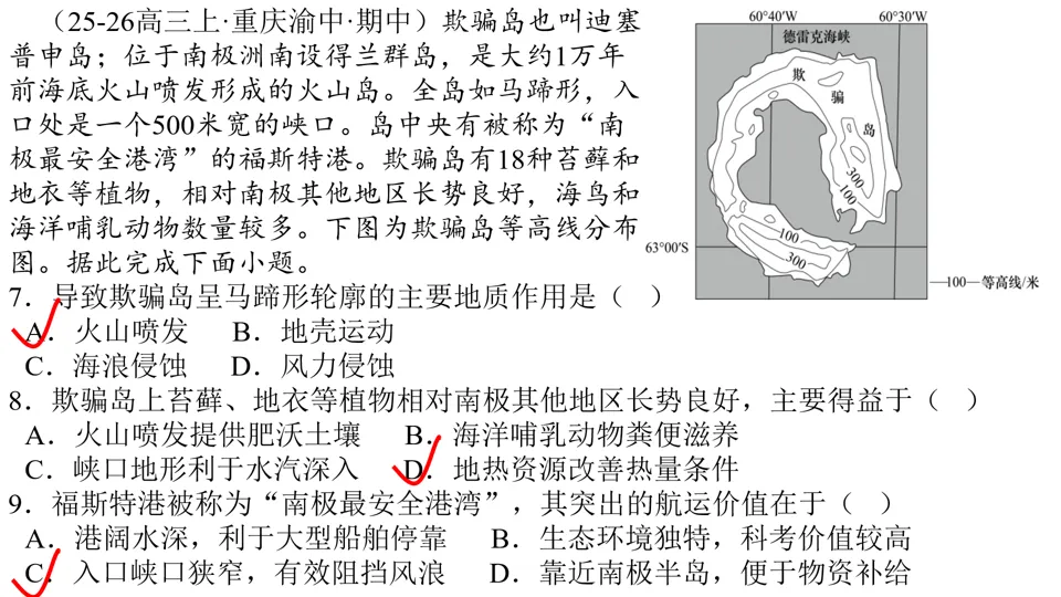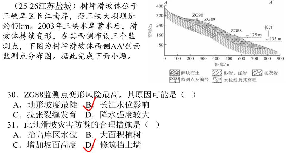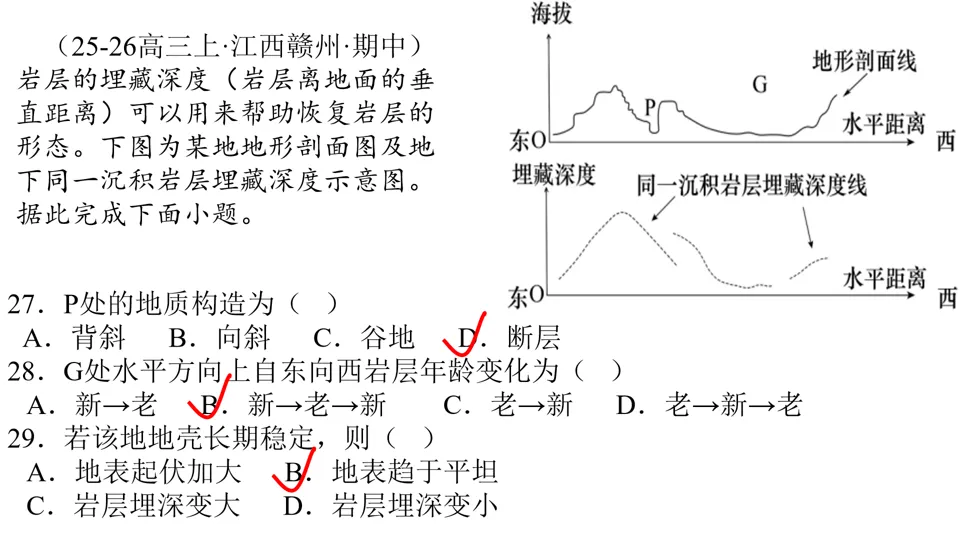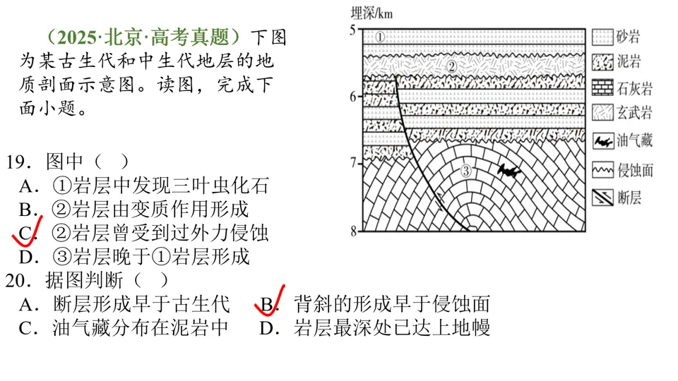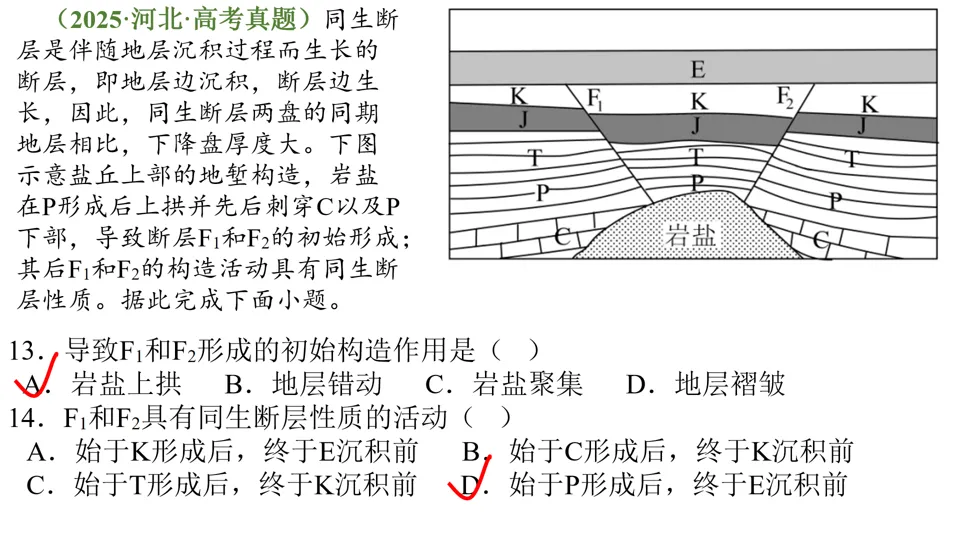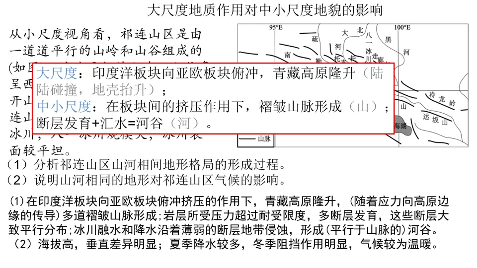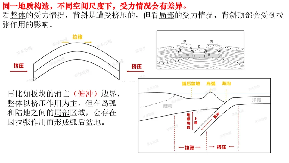 高屋建瓴,条分缕析,对各种内力作用做了深刻的点拨,涉及“岩层埋藏深度”、“背斜和向斜遭遇断层后,上下盘不同的侵蚀状况”等。并结合经典试题,对内力作用的逻辑顺序做出了详尽的分析。