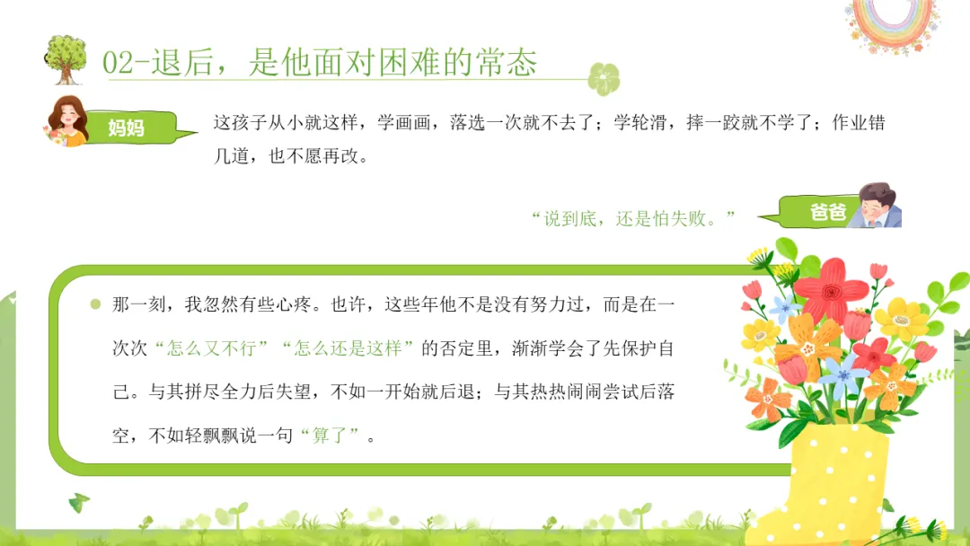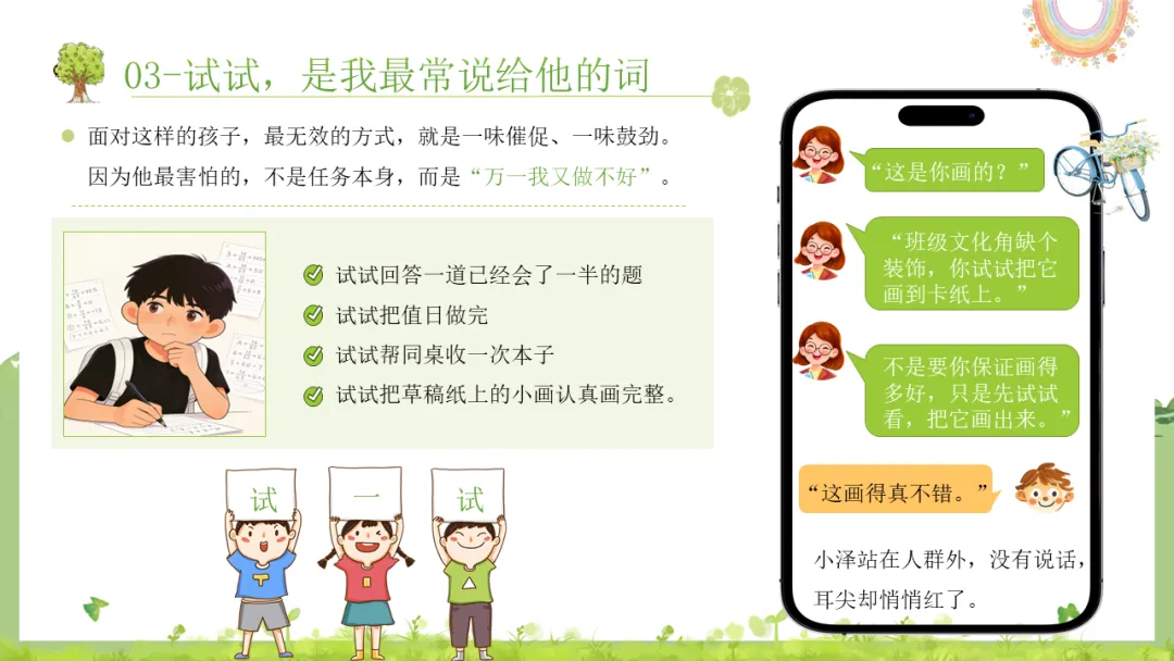 面对这样的孩子,最无效的方式,就是一味催促、一味鼓劲。因为他最害怕的,不是任务本身,而是“万一我又做不好”。