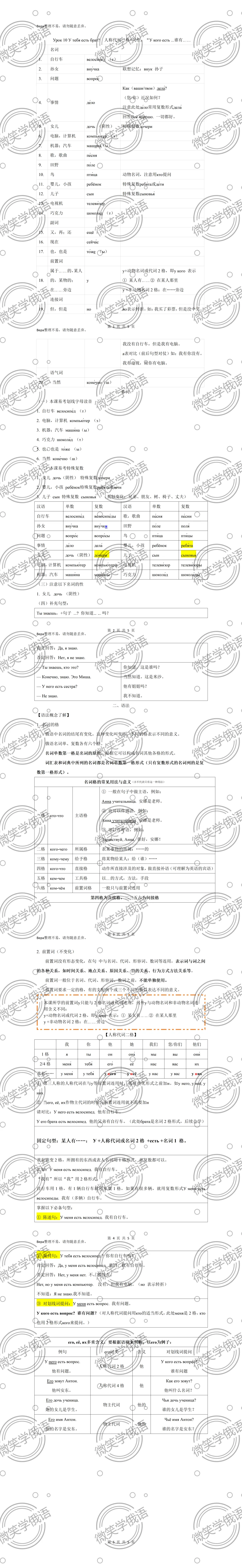 七年级俄语第10课学案教案