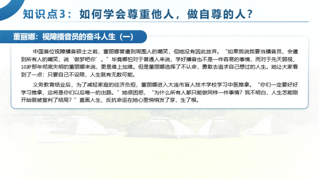 如何维护自己的人格尊严,做自尊的人;如何不断提升自己,做自尊的人;如何学会尊重他人,做自尊的人?