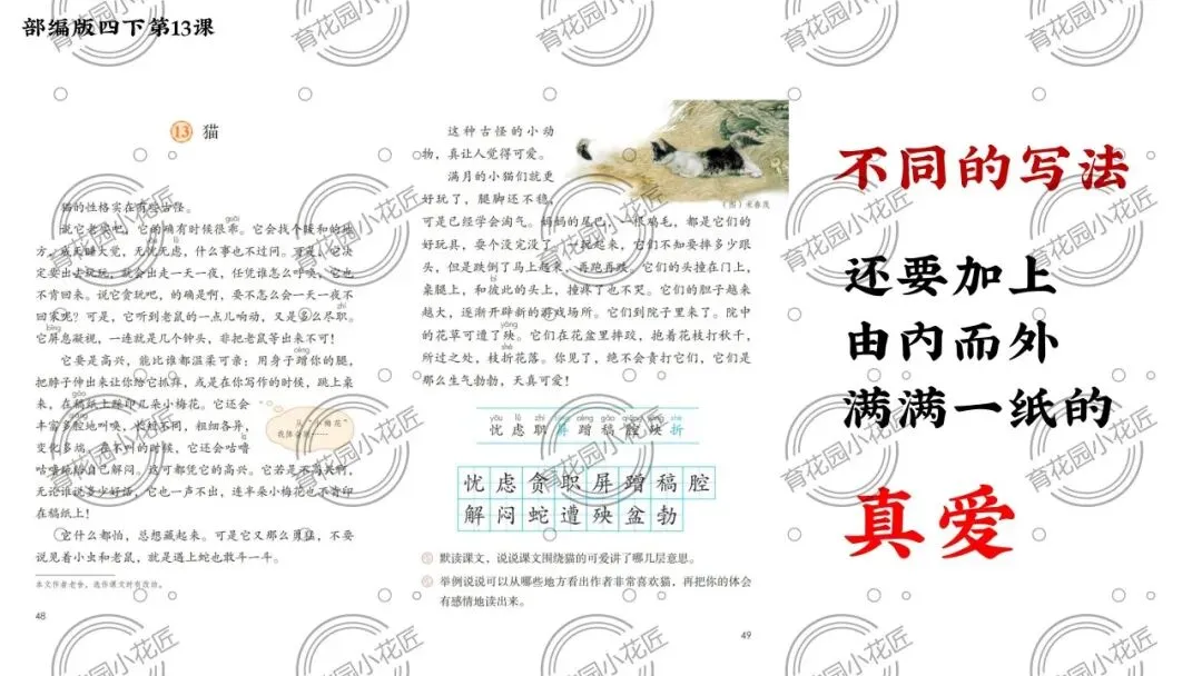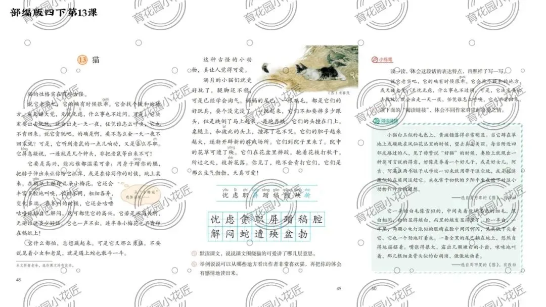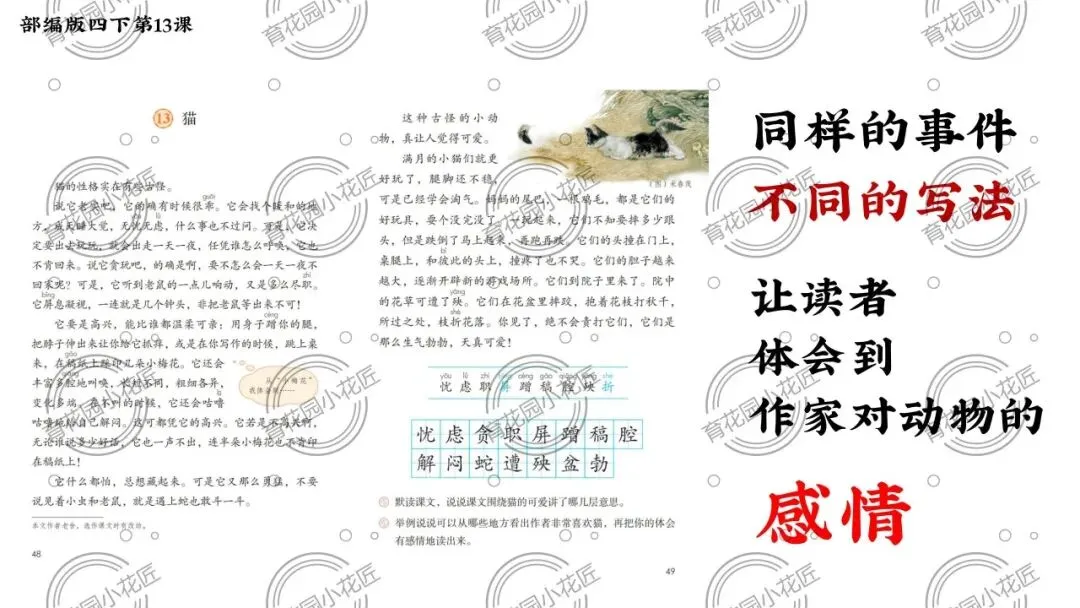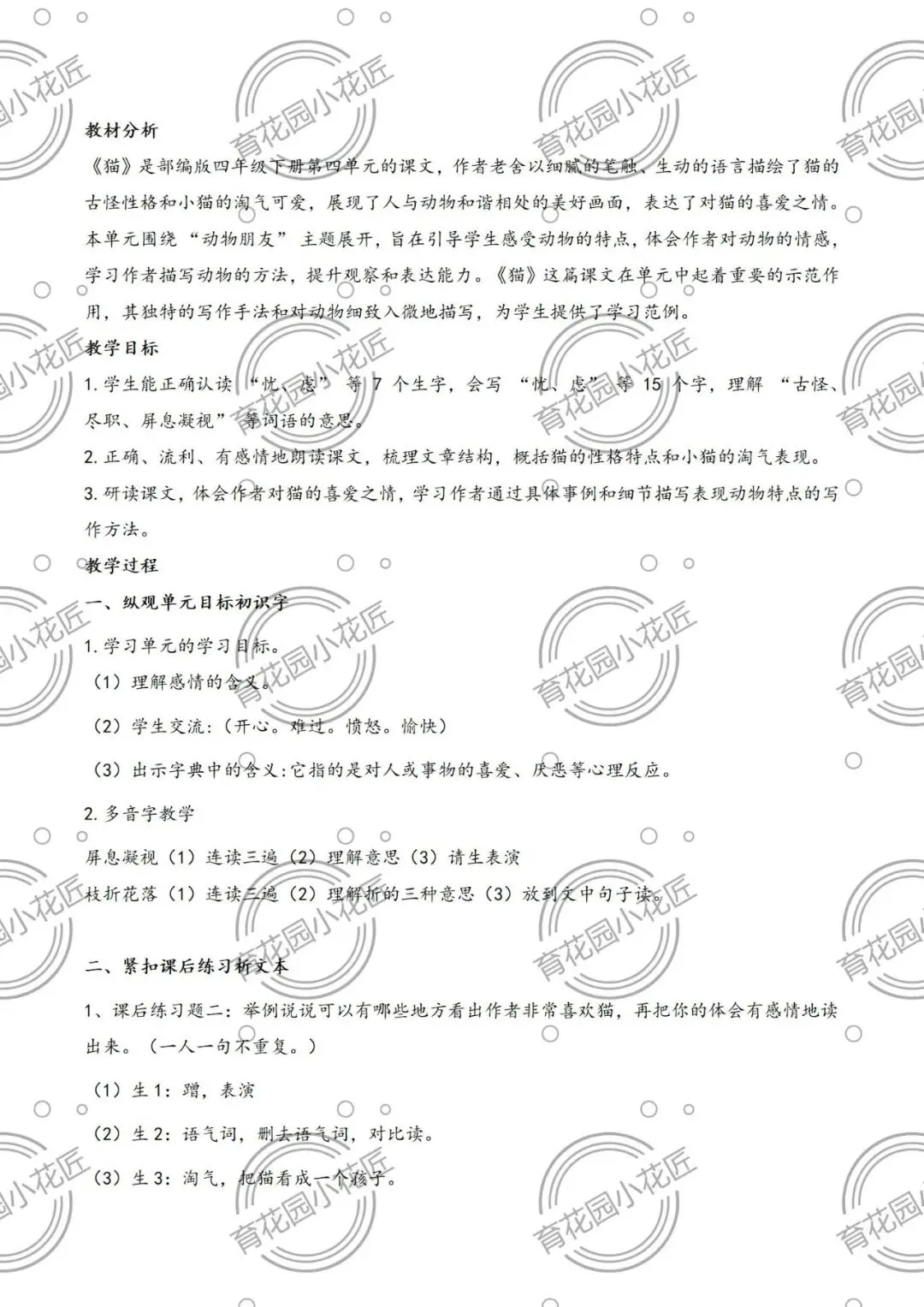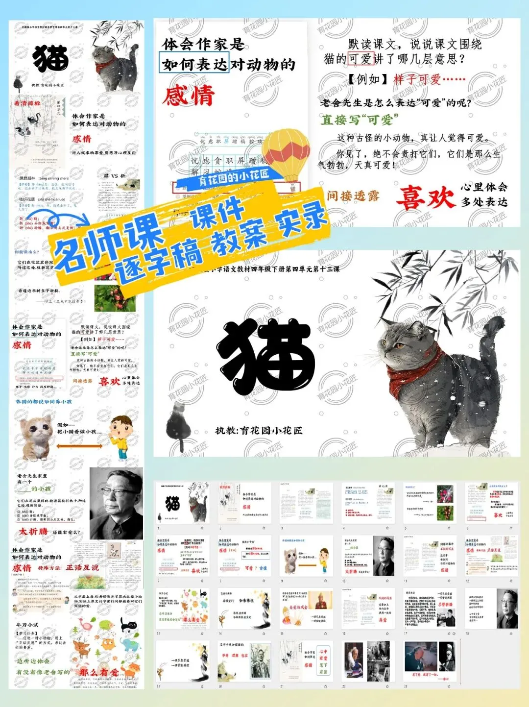 资源为语文四年级下册第13课《猫》的公开课,包含课件、逐字稿、教学设计、课堂实录,一个课时,可编辑,无水印,执教特级教师何老师。