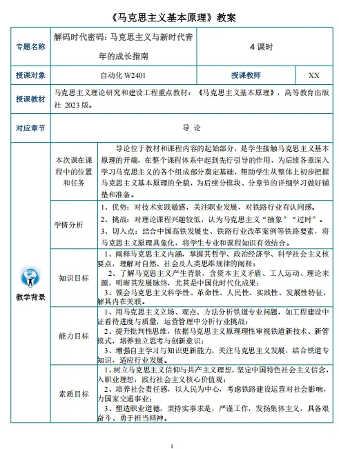 本期展示的作品为2025年度获奖作品,资源类型为教案,名称为“解码时代密码:马克思主义与新时代青年的成长指南”,课程为《马克思主义基本原理》,作者为姜敏。
