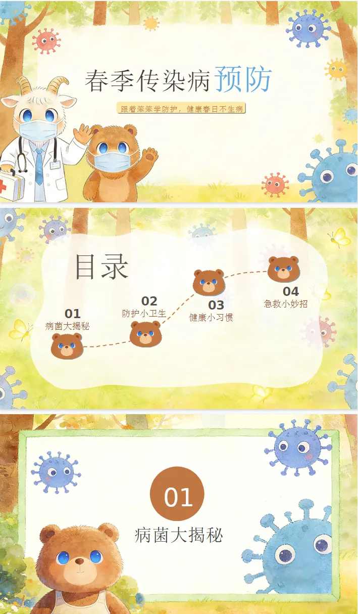 幼儿园春季传染病预防(卡通版)PPT、教案!
