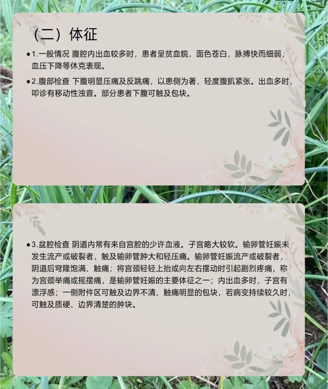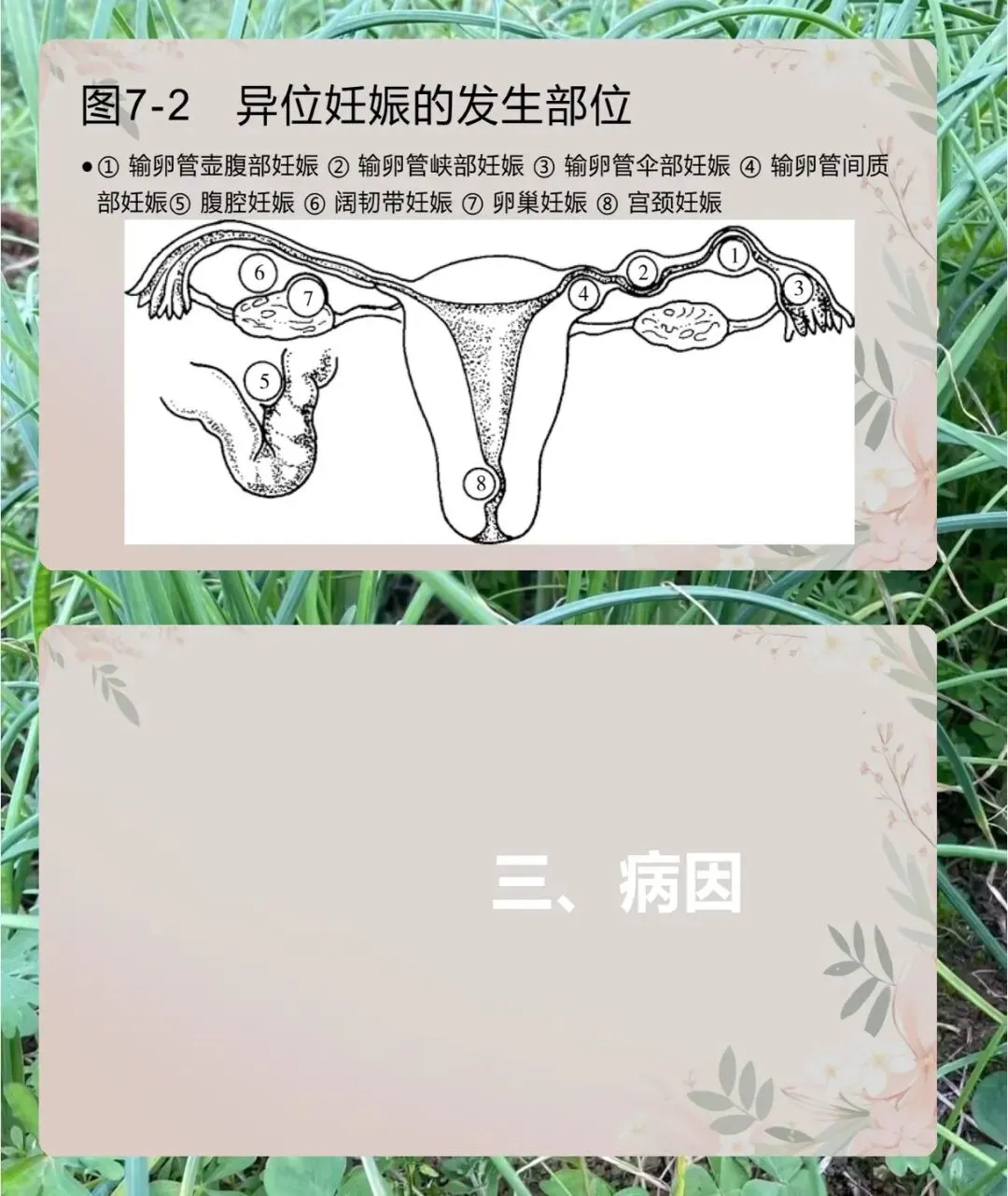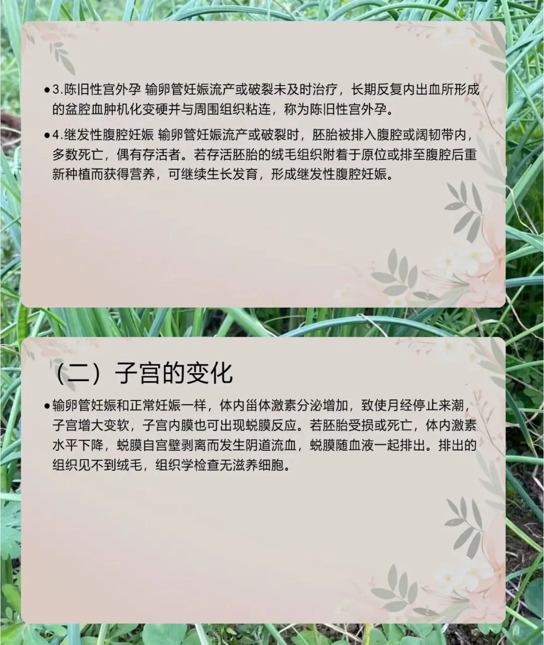 病理方面,输卵管妊娠有四种转归,流产多见于壶腹部,8-12 周发病,分完全和不全流产,不全流产出血更多。破裂多见于峡部,6 周左右发病,间质部破裂虽少见但症状严重,易致休克。还有陈旧性宫外孕和继发性腹腔妊娠。同时,异位妊娠会让子宫增大变软,子宫内膜出现蜕膜反应,胚胎死亡后会有蜕膜剥离导致的阴道流血。
