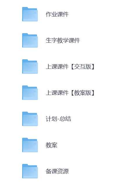 有教案、课件、生字教学课件、教学实录、作业课件、总结、反思等