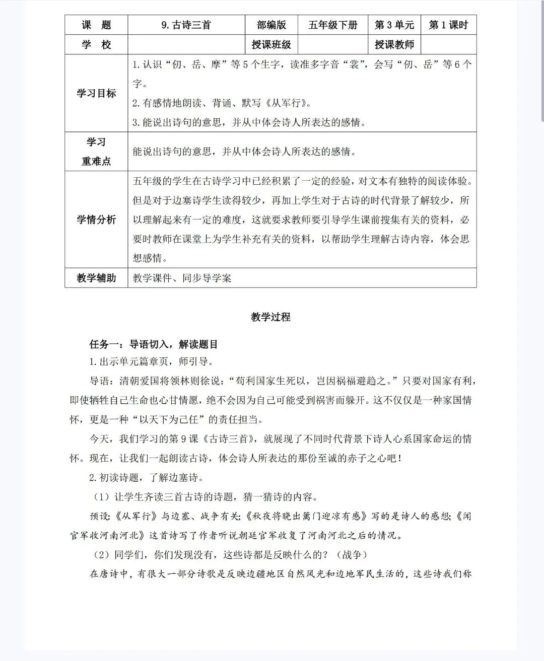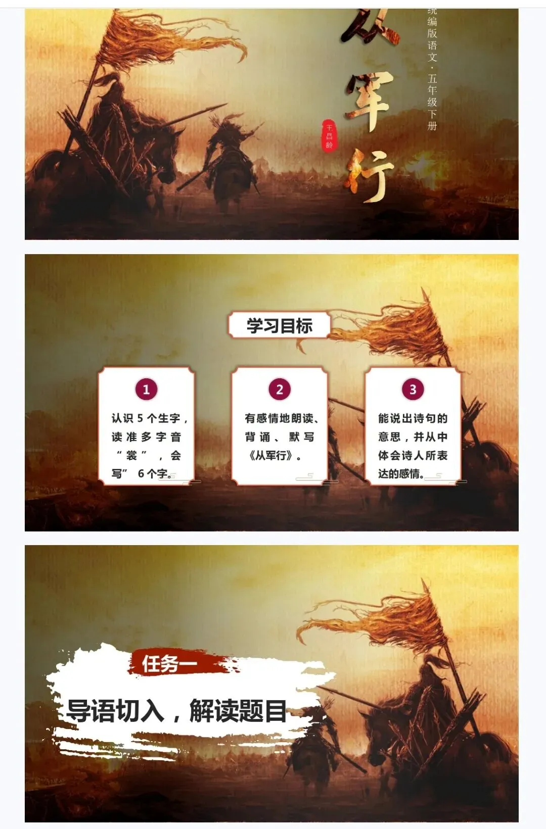 【新课标精品课件】五年级下《4.9古诗三首—从军行》课件+教案+分层作业+学习任务单