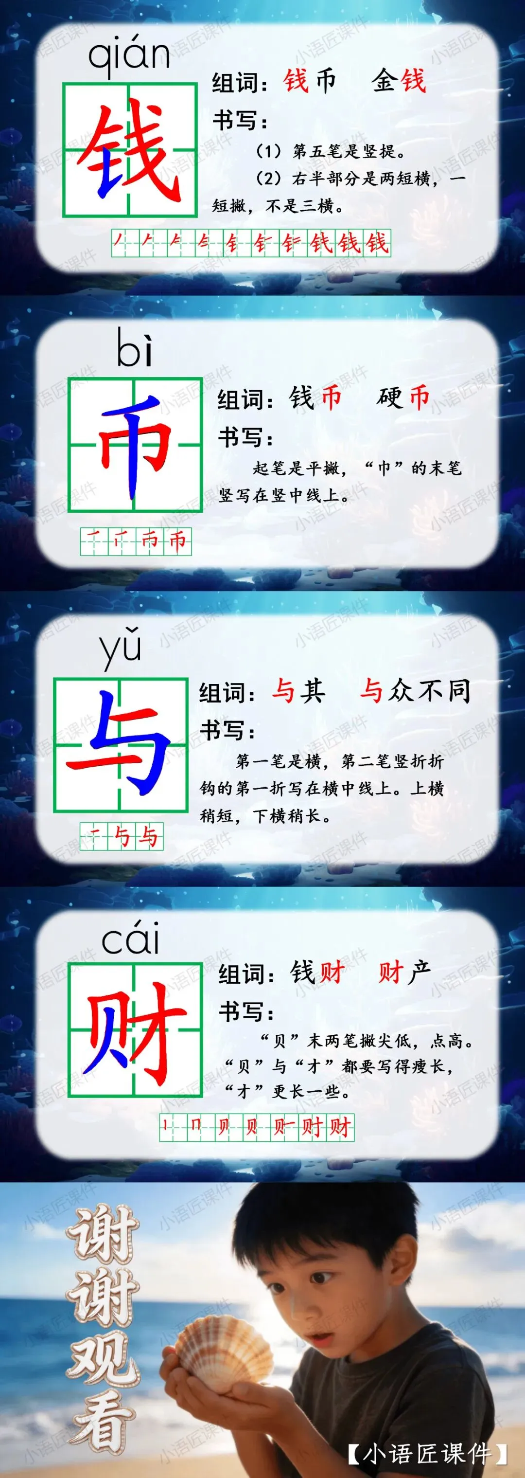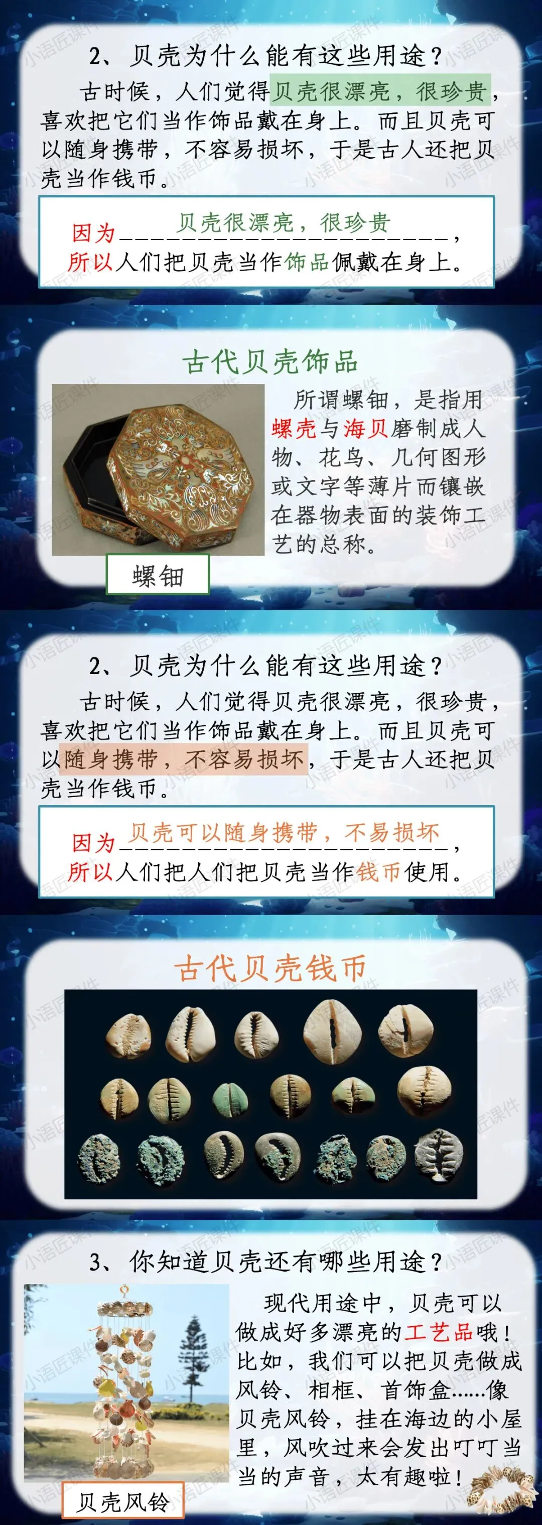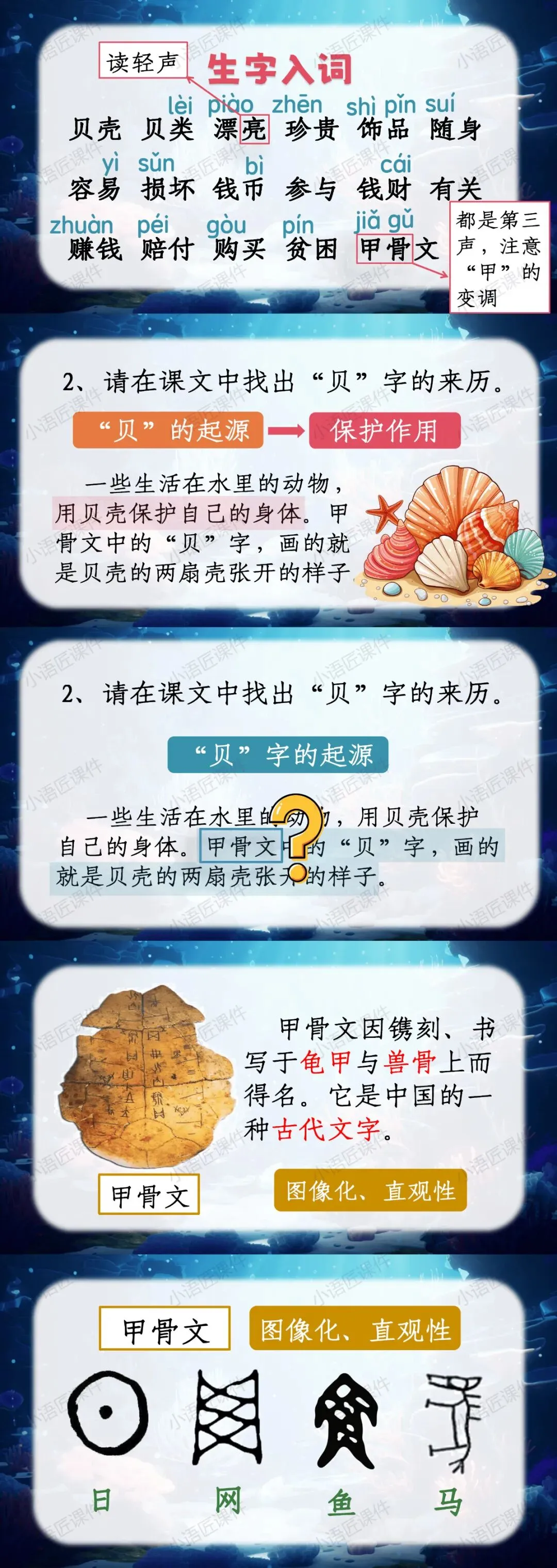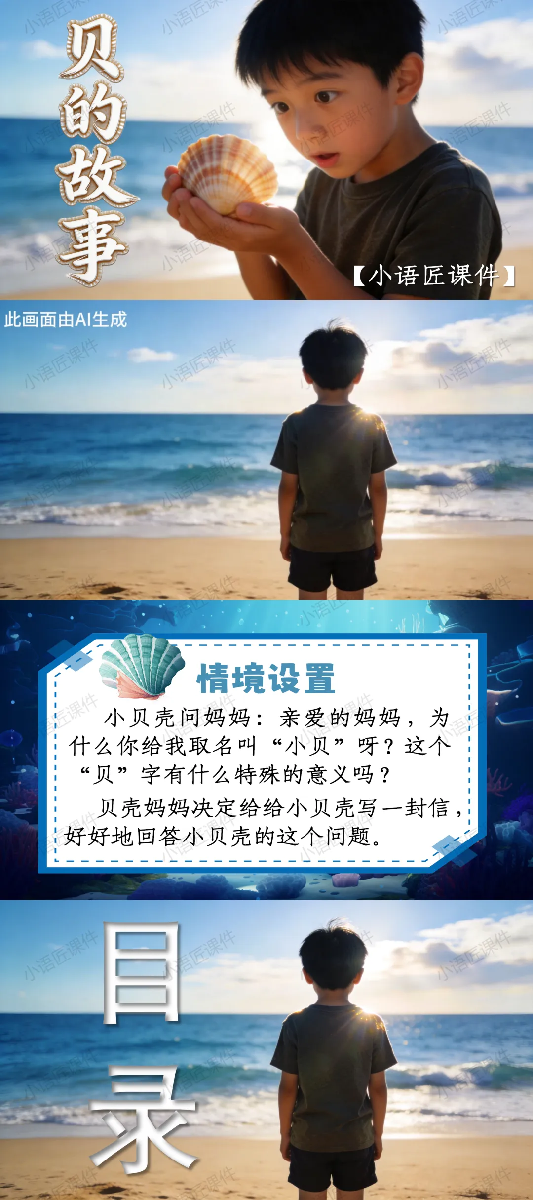 【二下课件】情景设置:“贝壳妈妈给小贝壳写的一封信”——识字《“贝”的故事》(课件+教学设计!)