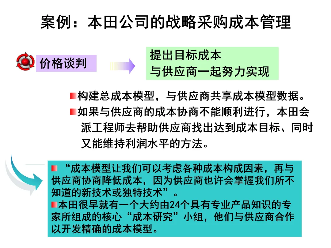 真正的成本控制,发生在供应商的车间里。 本田的做法给出了范本:派工程师帮供应商优化工艺,共享成本模型数据,用“目标成本法”倒推每一个零部件的合理性。这不是慈善,而是用专业能力把供应链的冗余水分挤干,让双方都活得更好。