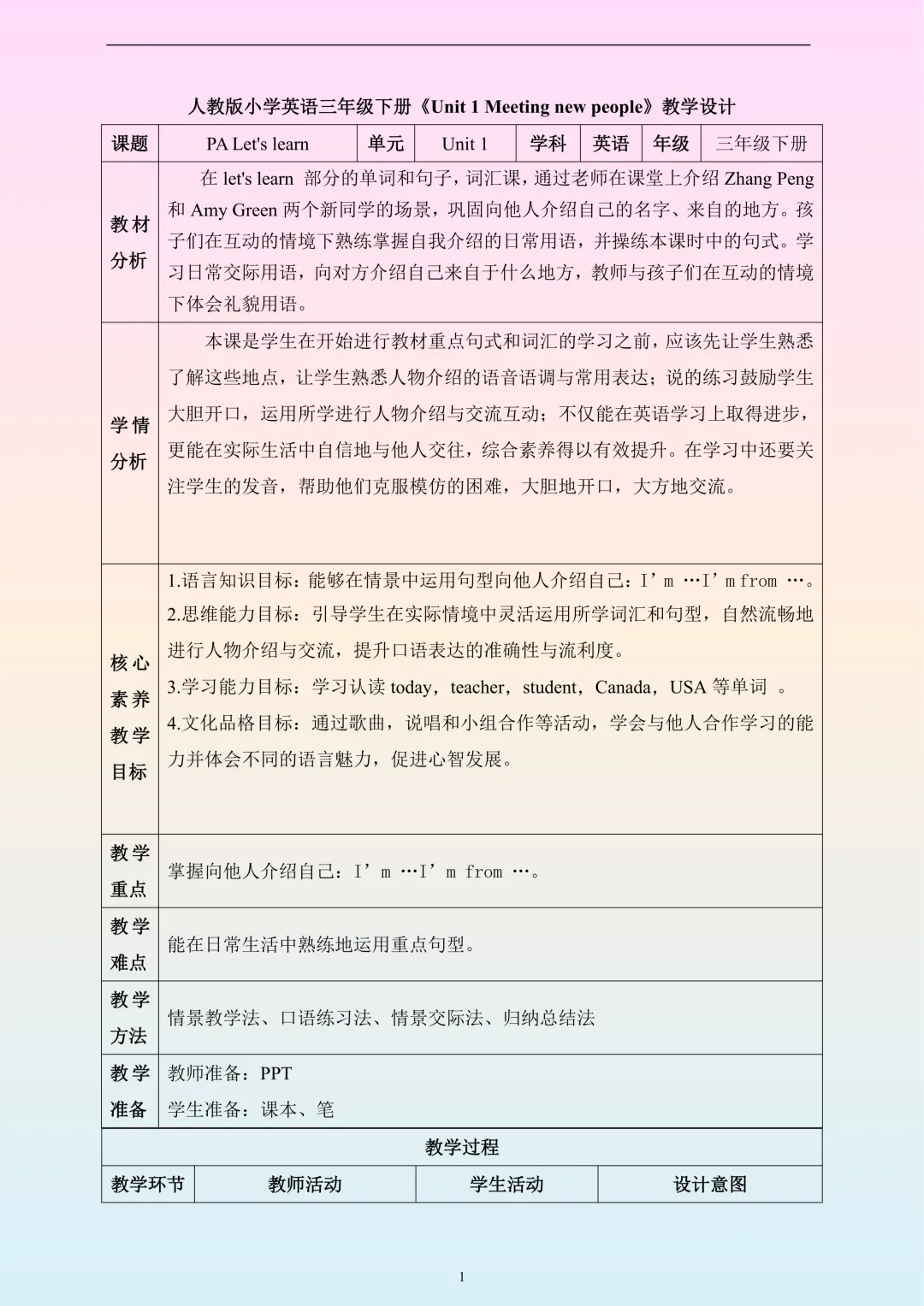 分享最新版人教版PEP小学英语三年级下册核心素养教案+课件+练习,电子版资料可以编辑、修改、打印。